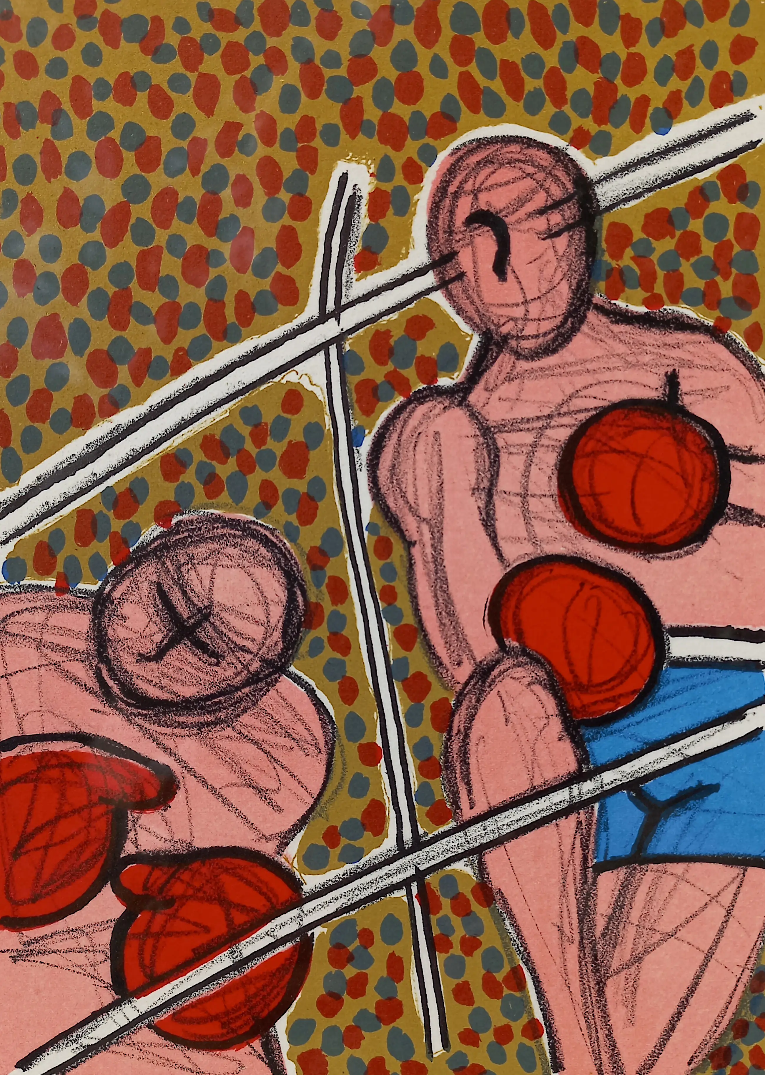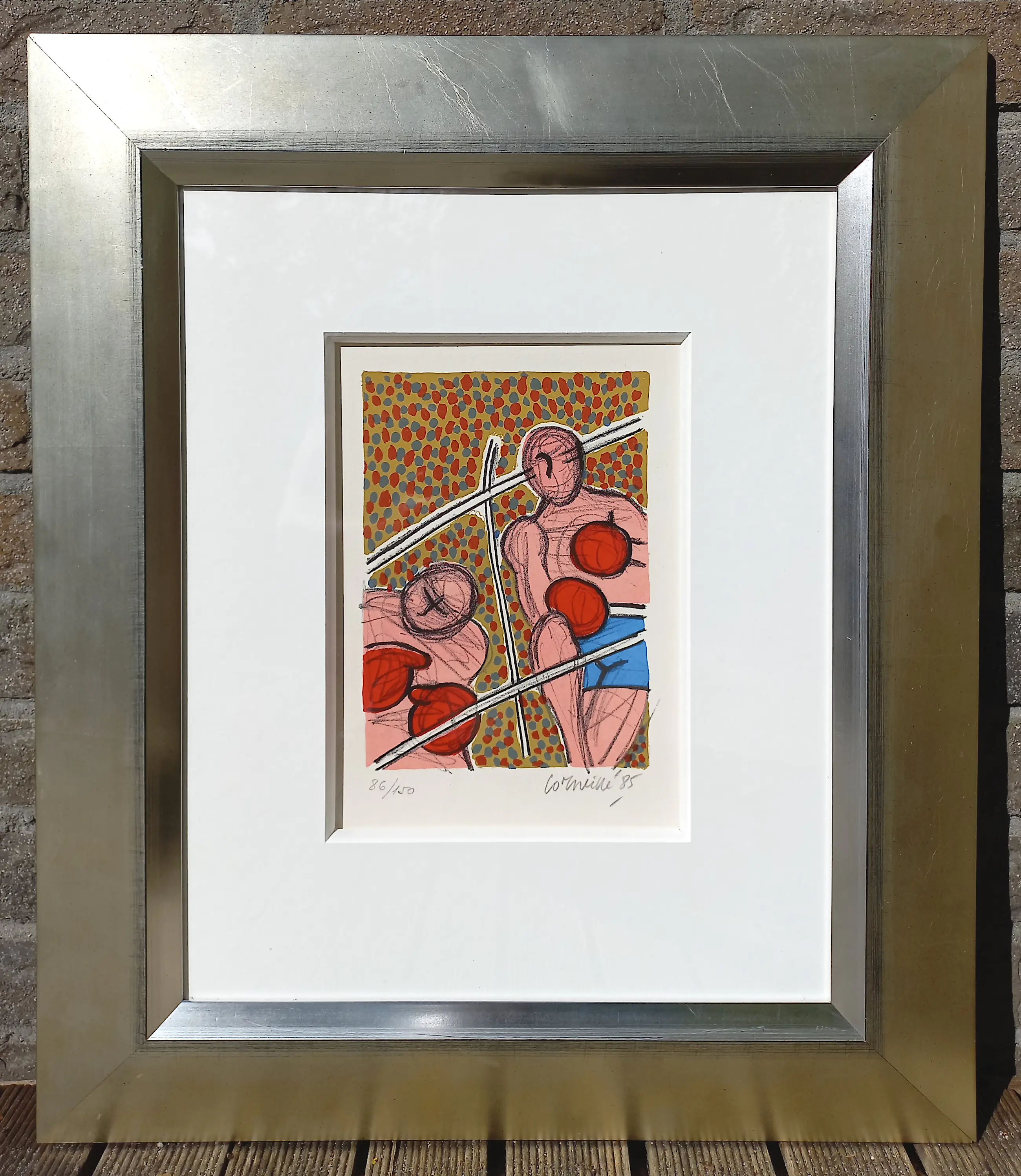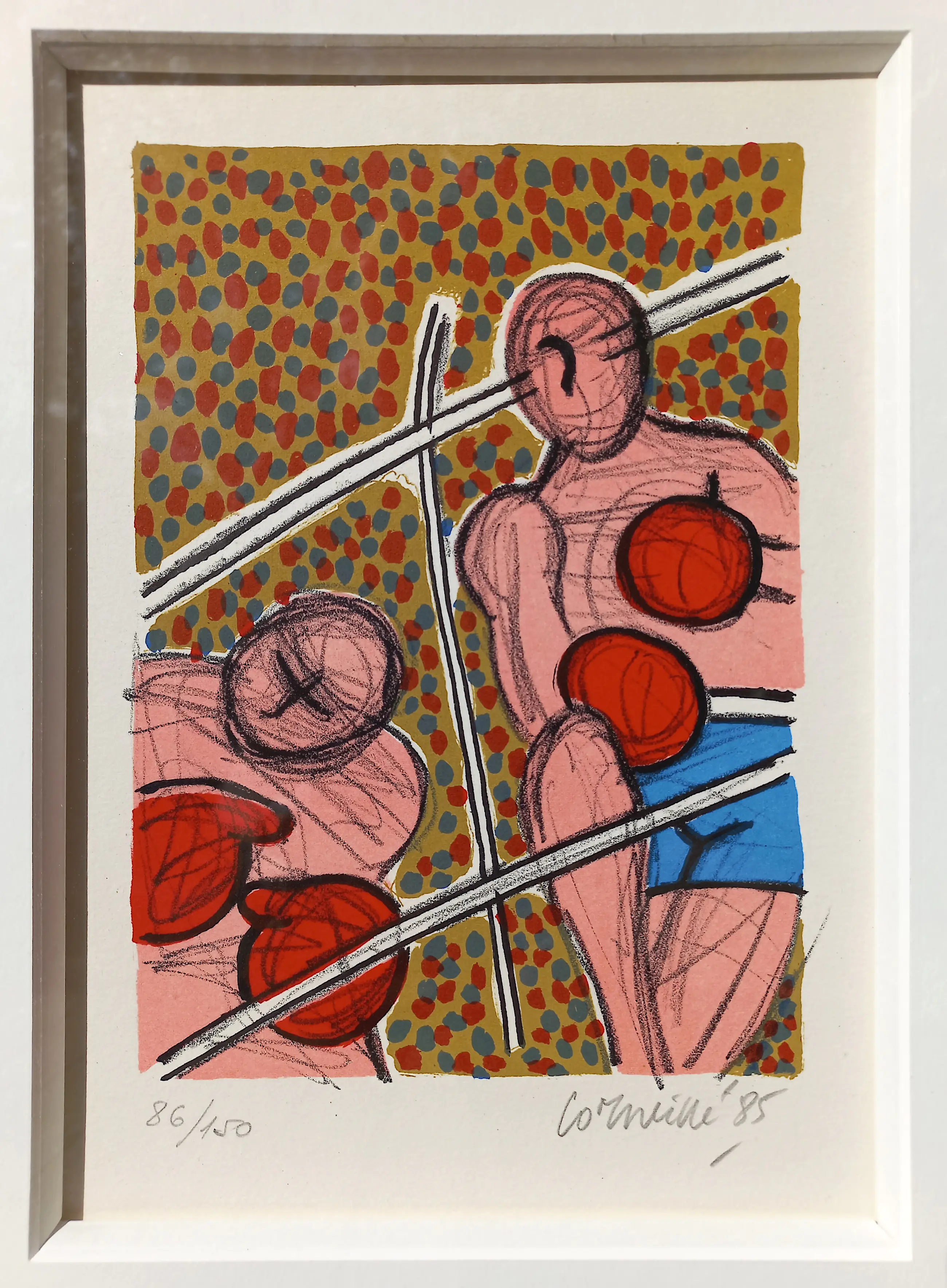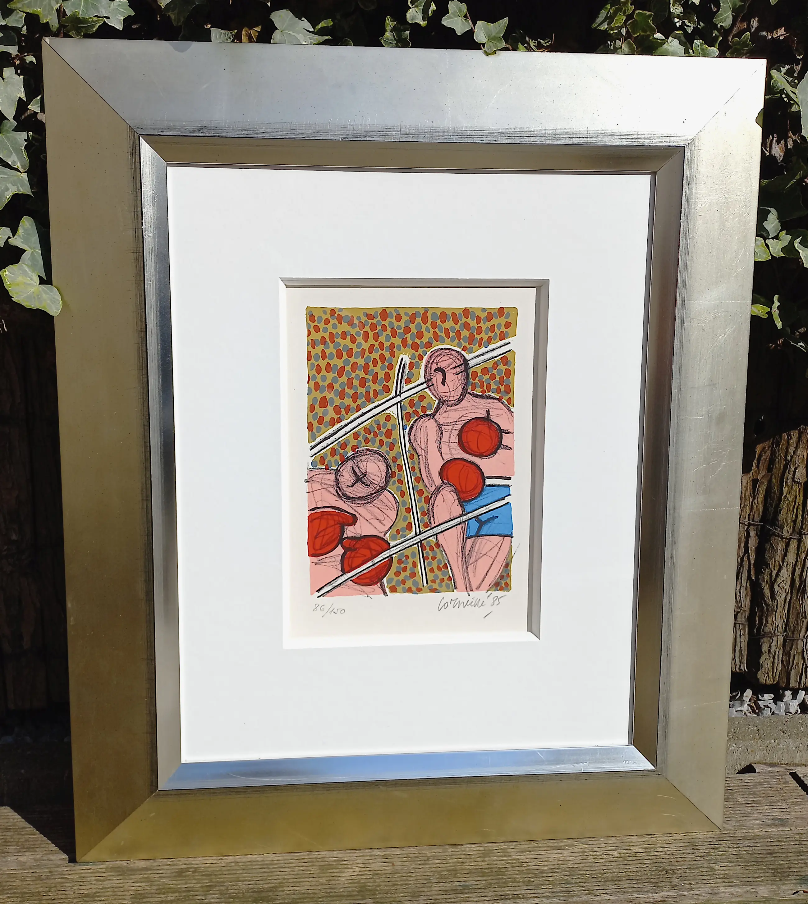 Mooi, maar atypisch, werk van Corneille. Litho op geschept papier, met potlood gesigneerd, gedateerd (‘85) en genummerd (86/150). Prachtig, professioneel ingelijst, achter glas en met smetteloos, diep passe-partout. In uitstekende conditie.