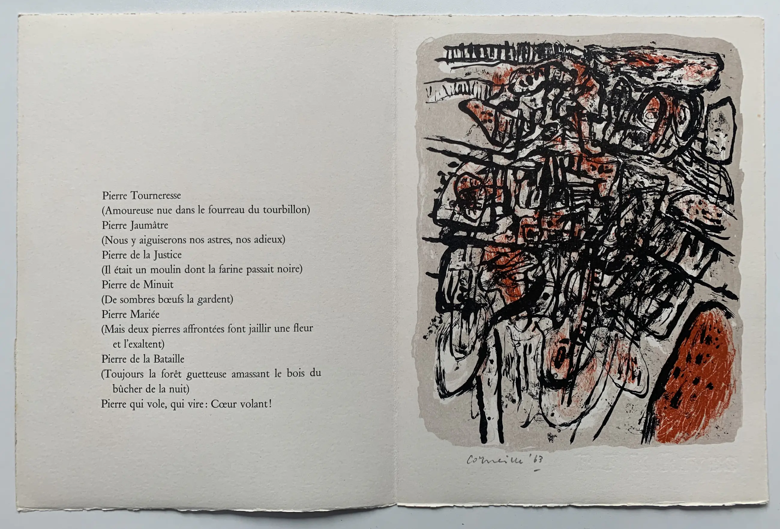 Misschien wel de heilige graal voor wat betreft grafiek van Corneille. Veel van deze portfolio's zijn uit elkaar gehaald en los verkocht. Het geheel bestaat uit een cassette met gelithografeerde omslag. De cassette bevat een omslag die alles bij elkaar houdt, die ook gelithografeerd is. Daarin bevinden zich de acht litho's, met daarbij teksten van Jean Clarence Lambert.