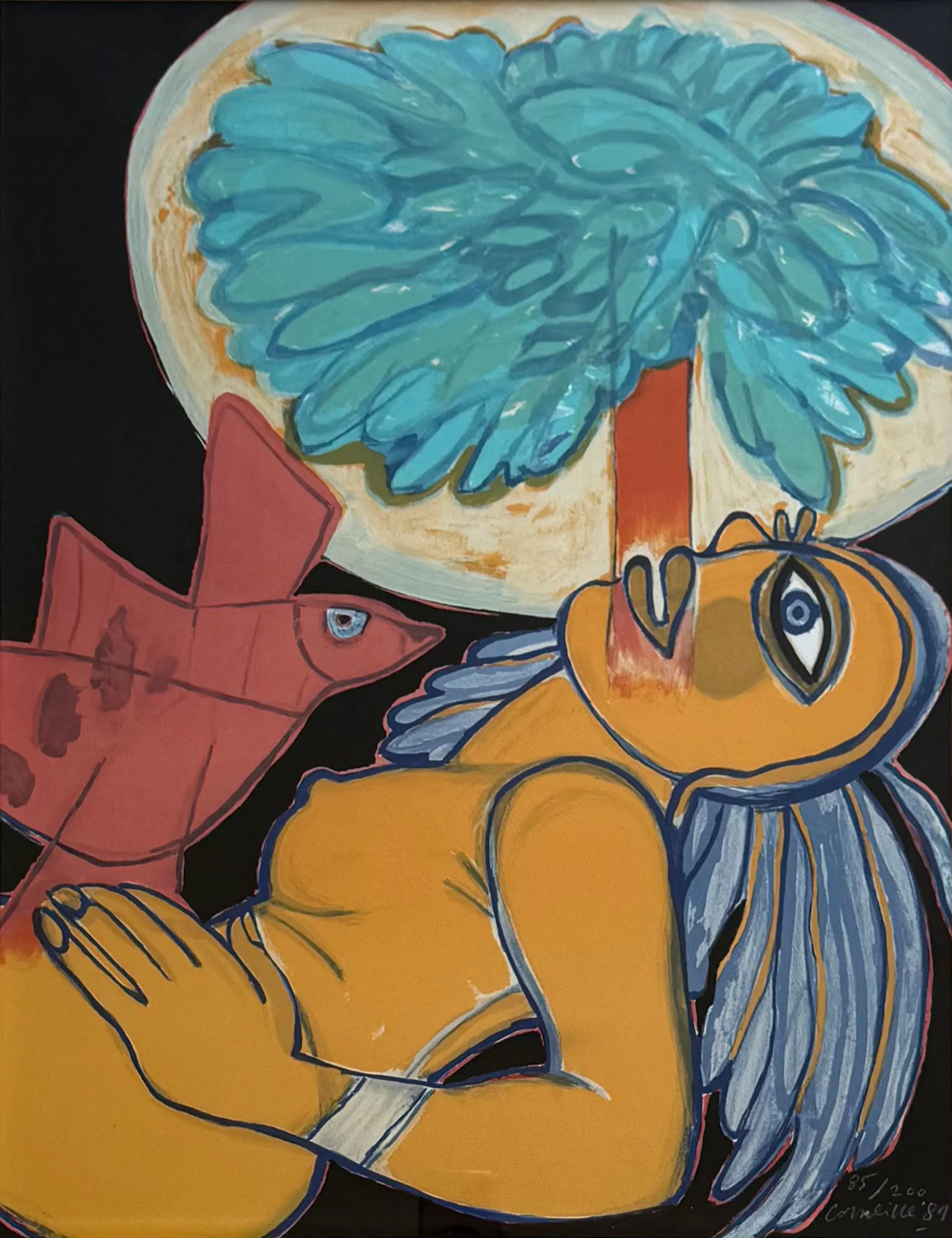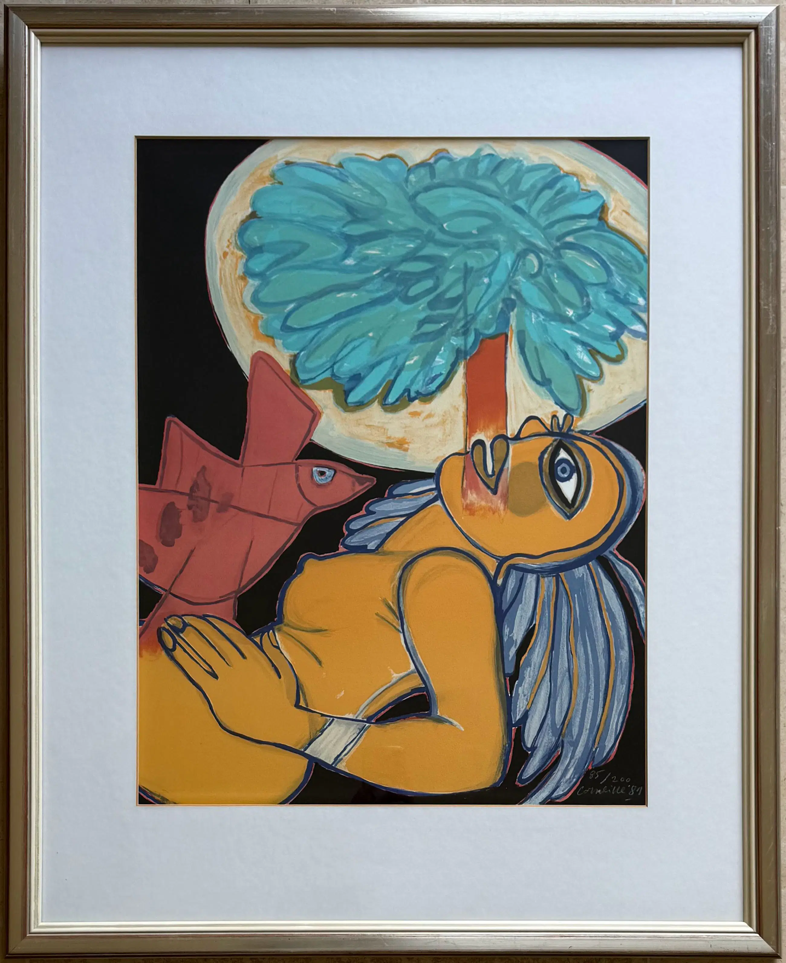 Kleurenlitho van Corneille uit 1981. Het werk is rechtsonder met de hand gesigneerd door de kunstenaar.