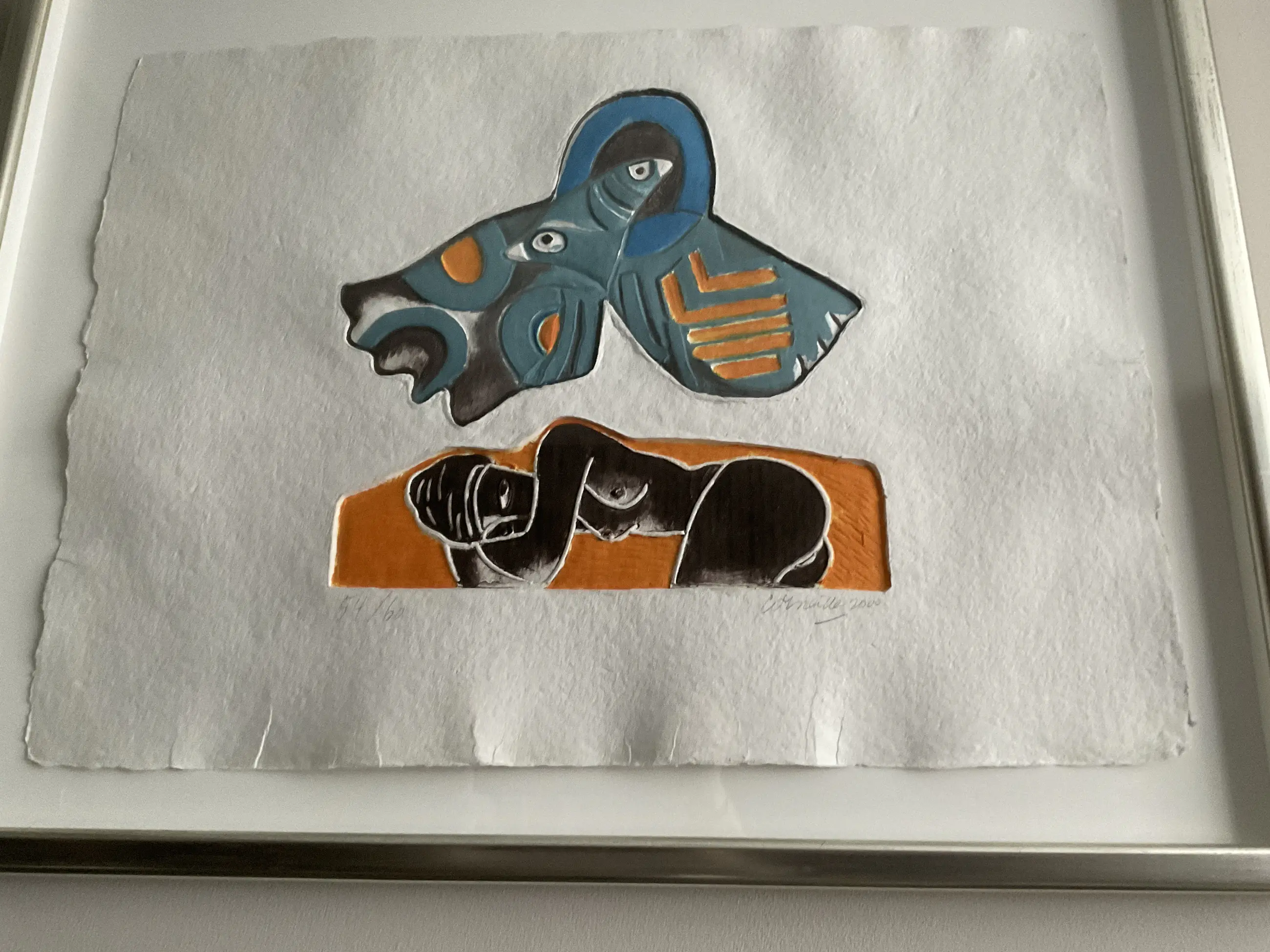 Corneille (1922-2010) schilder aquagravure 2000 Prachtige aquagravure uit 2000 van Corneille, getiteld 'Les oiseaux amoureux et l’africaine'. Handgesigneerd rechtsonder door de kunstenaar. Professioneel ingelijst in een luxe, nieuwe lijst. Het werk is in perfecte staat. Een indrukwekkend kunstwerk van een bekende Cobra kunstenaar.