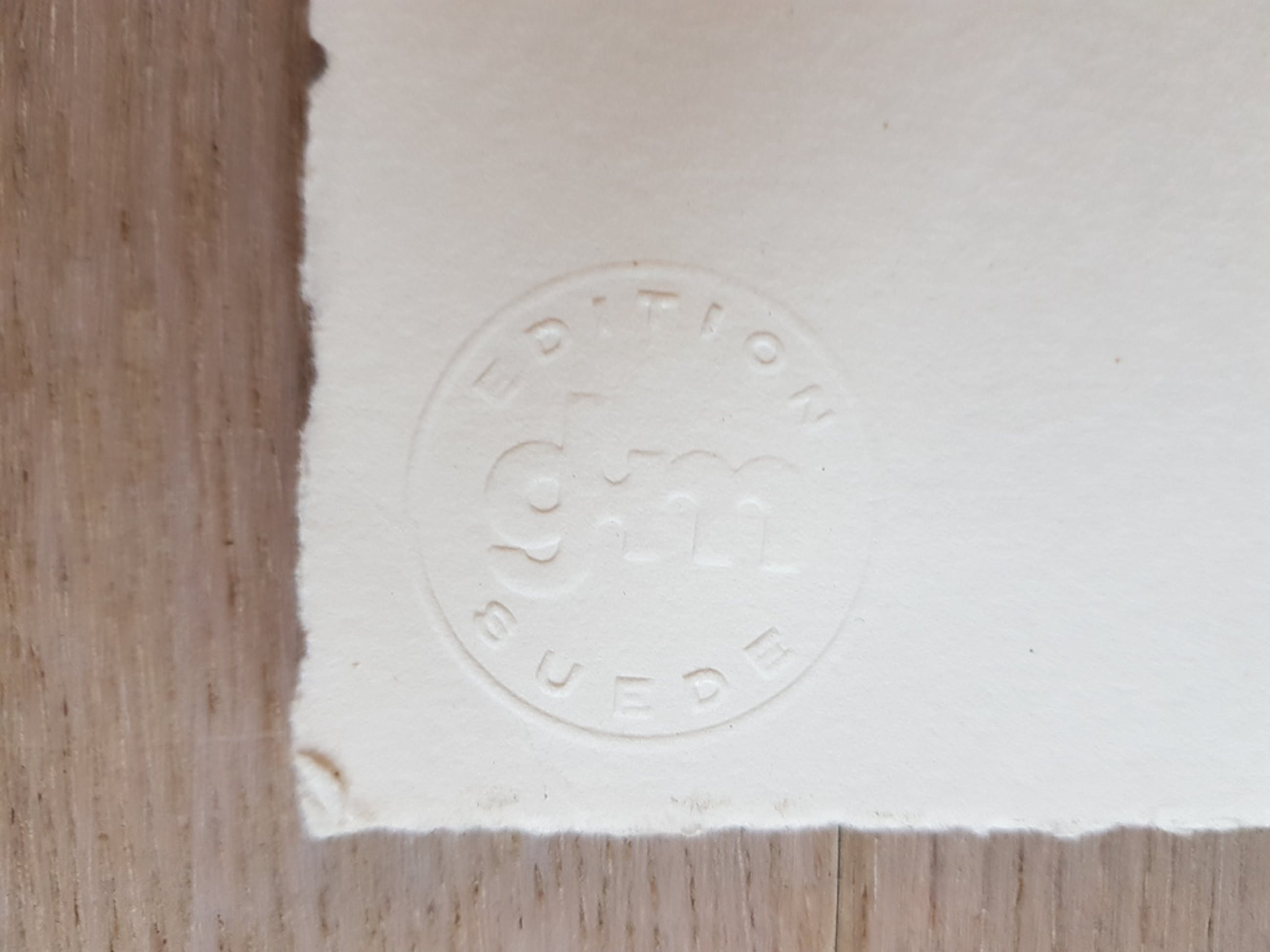 Het werk is nooit ingelijst geweest en in goede staat. Het papierwerk is voorzien van een GKM edition Suede stempel.