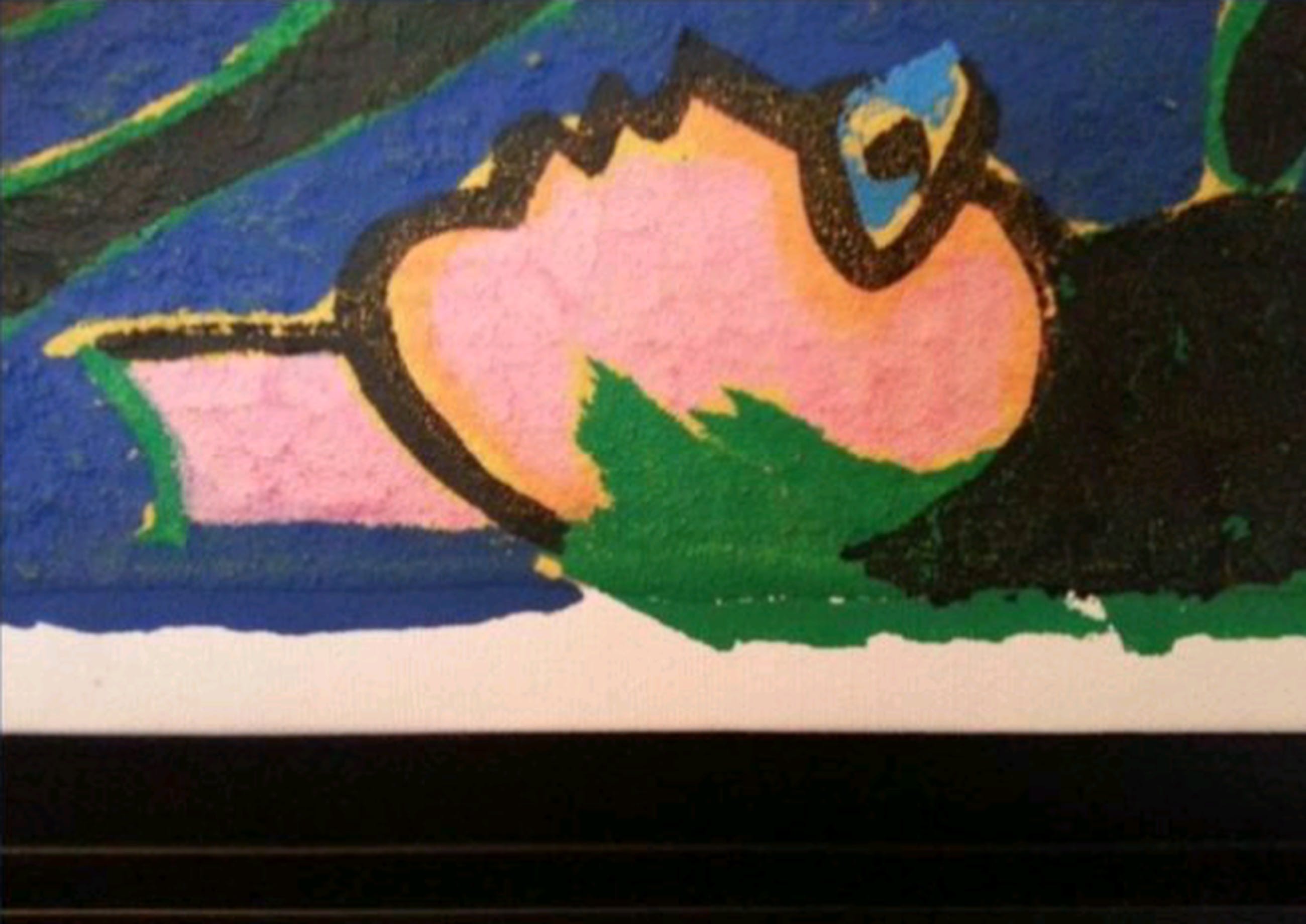 De terragravure zeefdruk techniek is zeer exclusief: de drukverf wordt met zand vermengd waardoor er fraaie reliëf verschillen ontstaan. Dit werk werd gedrukt in een ateliers in Israël.