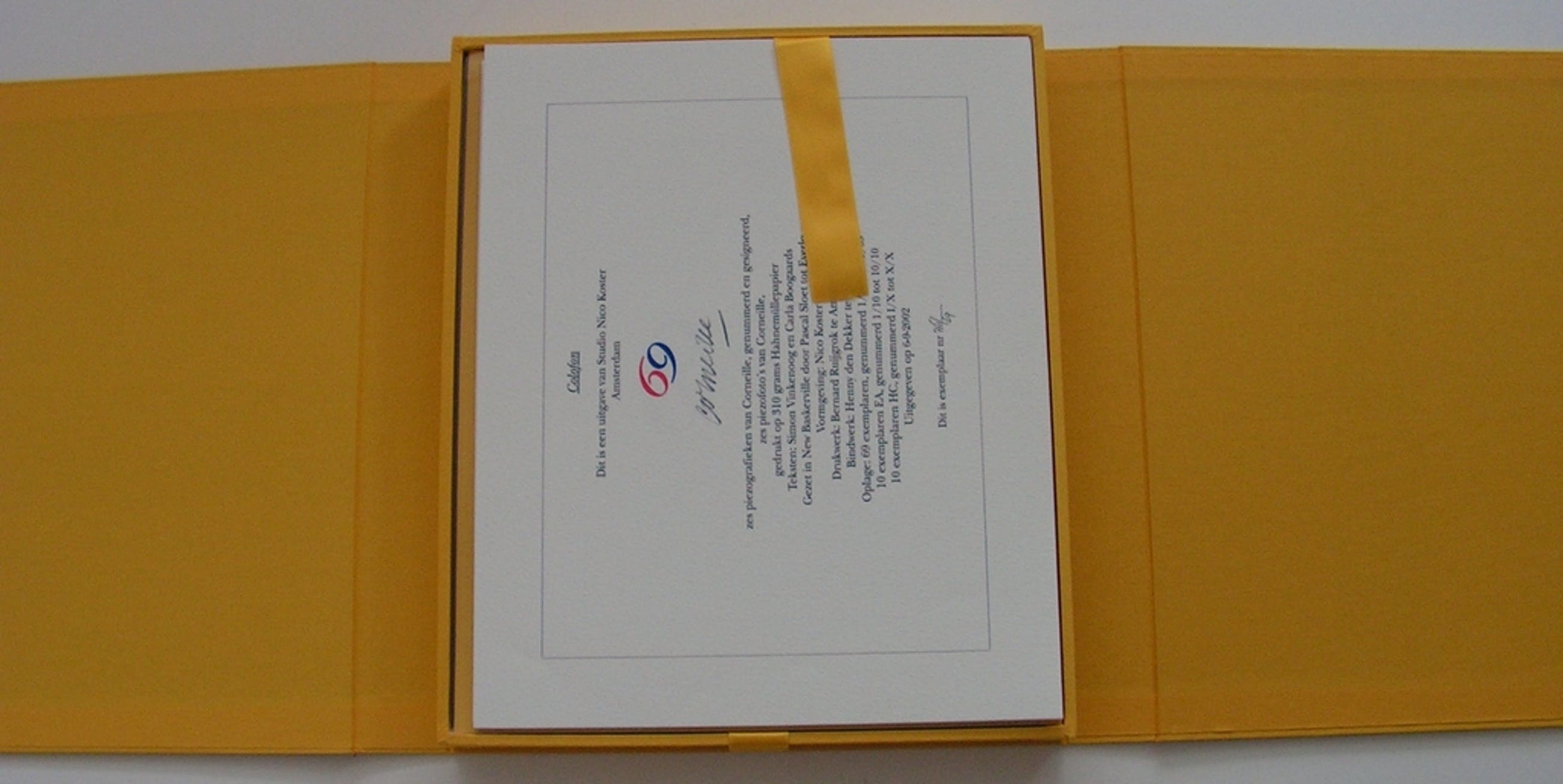 6 piezografieken en 6 piezofoto's van Corneille in luxe box. Oplage 69 genummderde exemplaren genummerd van 1 t/m 69.