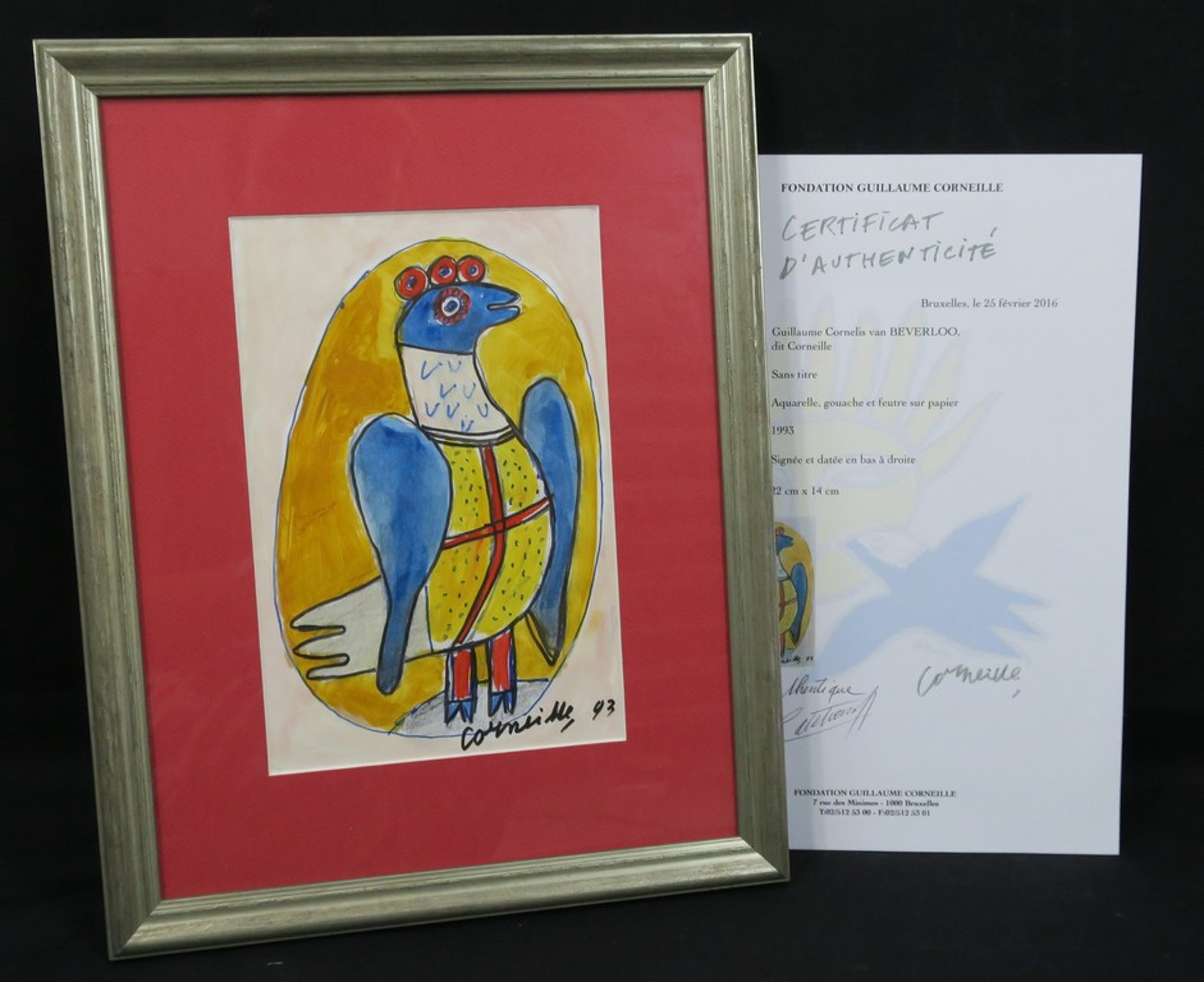 Zeer mooie Aquarel van Corneille uit 1993 met certificaat van authenticiteit!