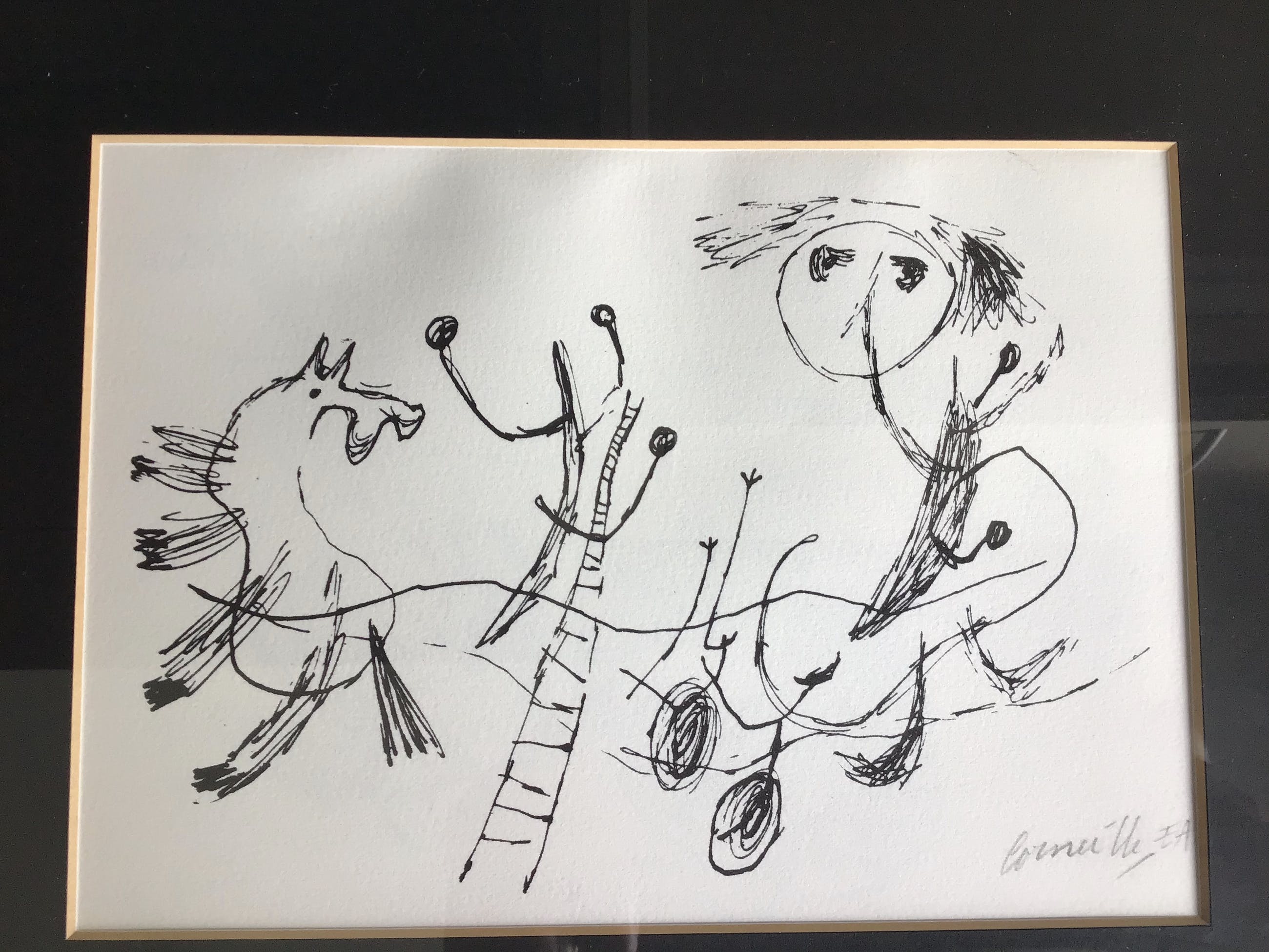 Corneille - Guillaume Cornelis van Beverloo (3 juli 1922 - 5 september 2010), beter bekend onder zijn pseudoniem Corneille, was een Nederlandse kunstenaar. Corneille werd geboren in Luik, België, hoewel zijn ouders Nederlands waren en verhuisde terug naar Nederland toen hij 12 was. Hij studeerde kunst aan de Academie van Beeldende Kunsten in Amsterdam en was een van de oprichters van de REFLEX-beweging (1948) en de COBRA-beweging (1949). Corneille werd sterk beïnvloed door Miró en Klee