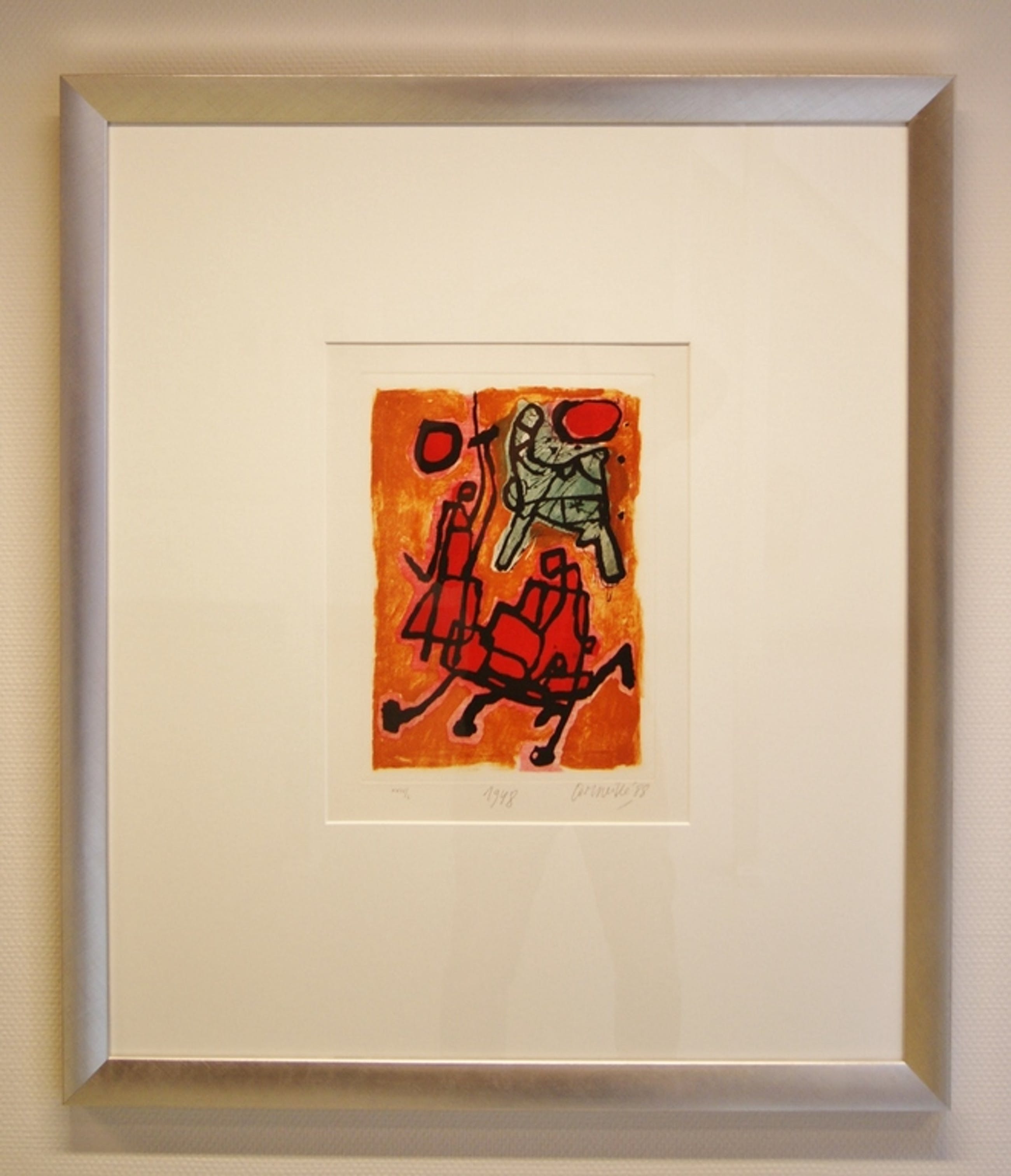 Prachtige grote ets/aquatint uit 1988, uitgegeven 40 jaar naar de oprichting van de CoBrA-groep.