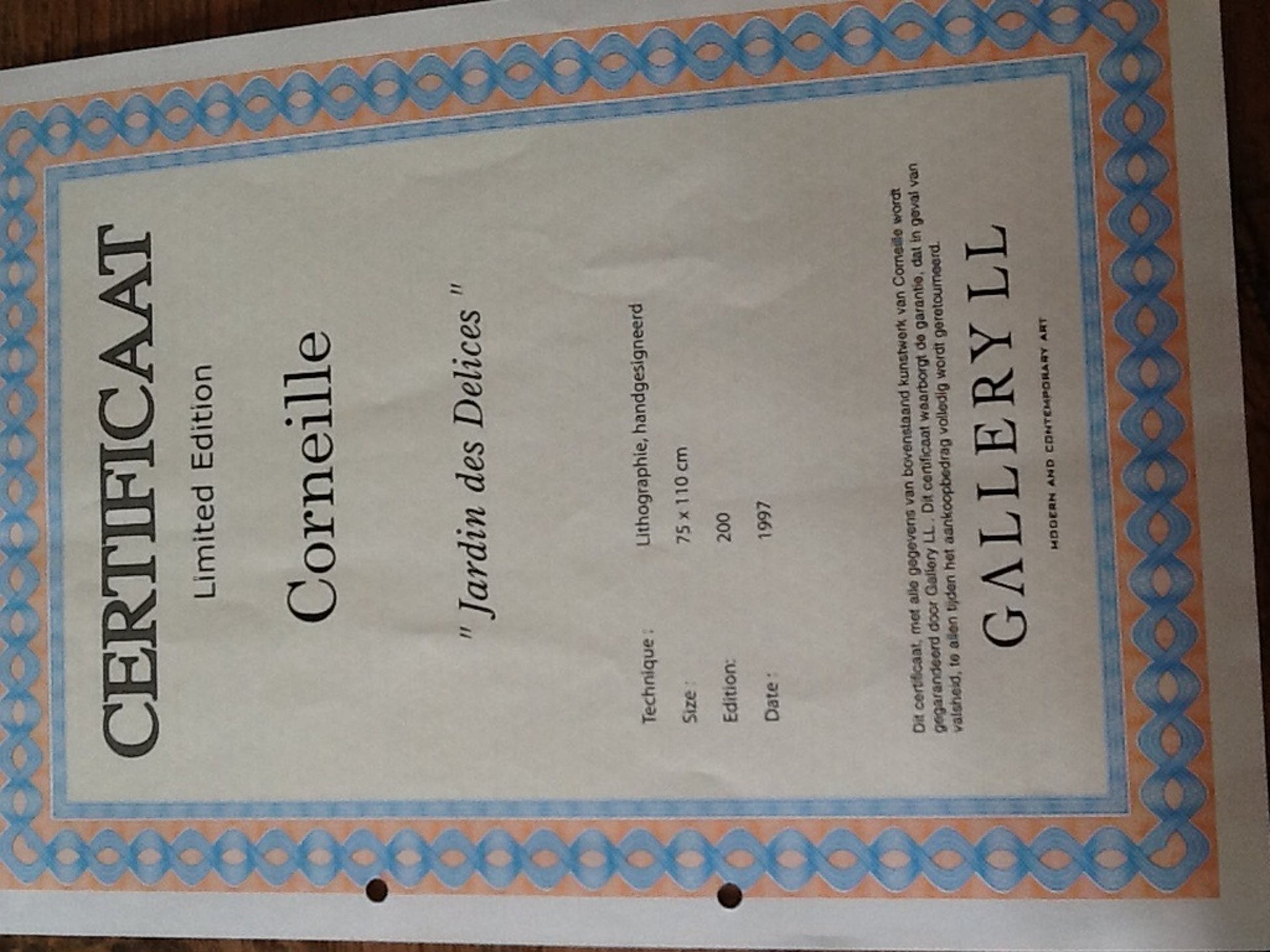 Prachtige grote kleurenlitho (ingelijst) van Corneille 'Jardin des Delices' (1997)