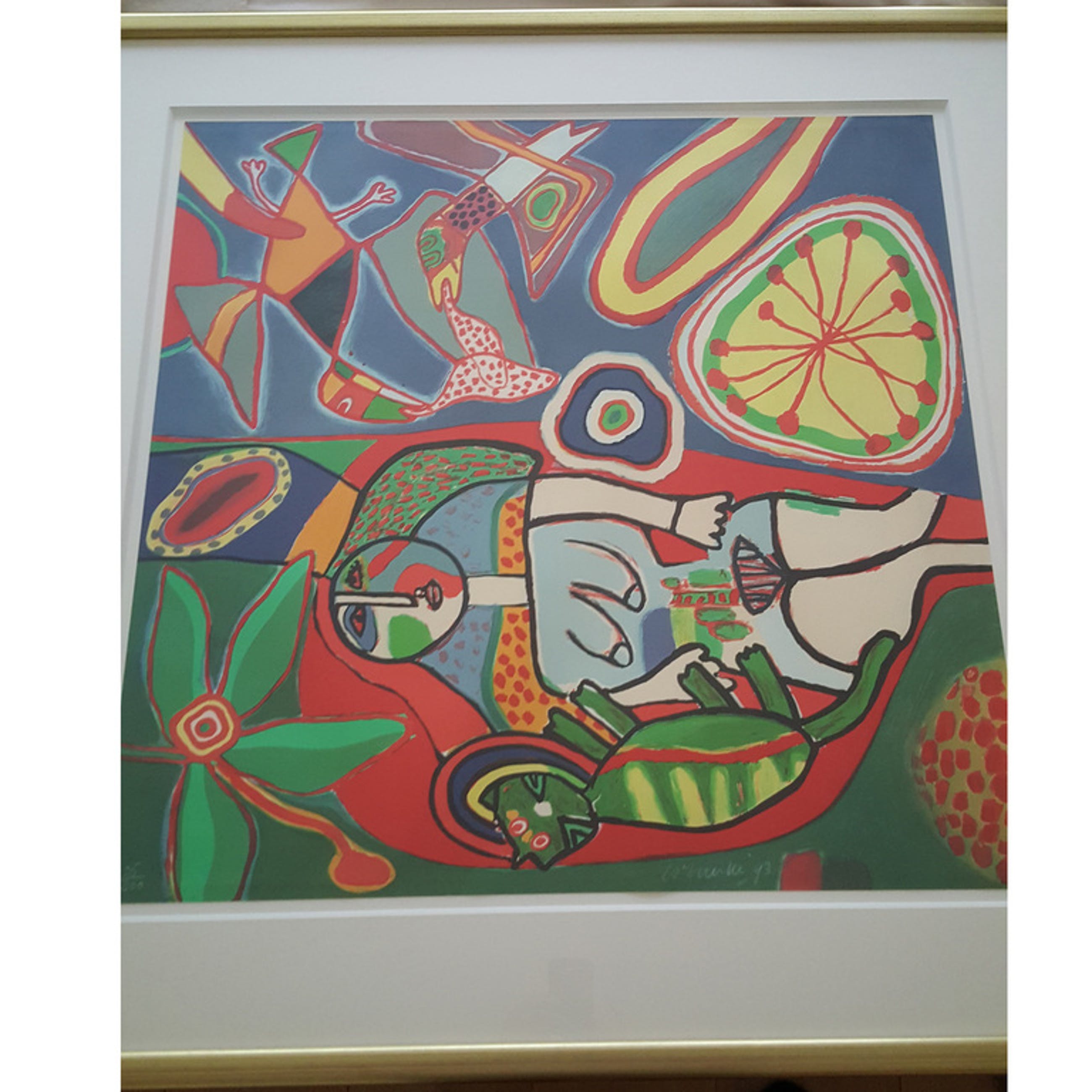 Grote ingelijste Corneille litho. Gesigneerd. Jaar 1993. Afmetingen inclusief de lijst: 105 x 105 cm. Afmeting van de voorstelling is 78 x 78 cm. Nummer 95/200.