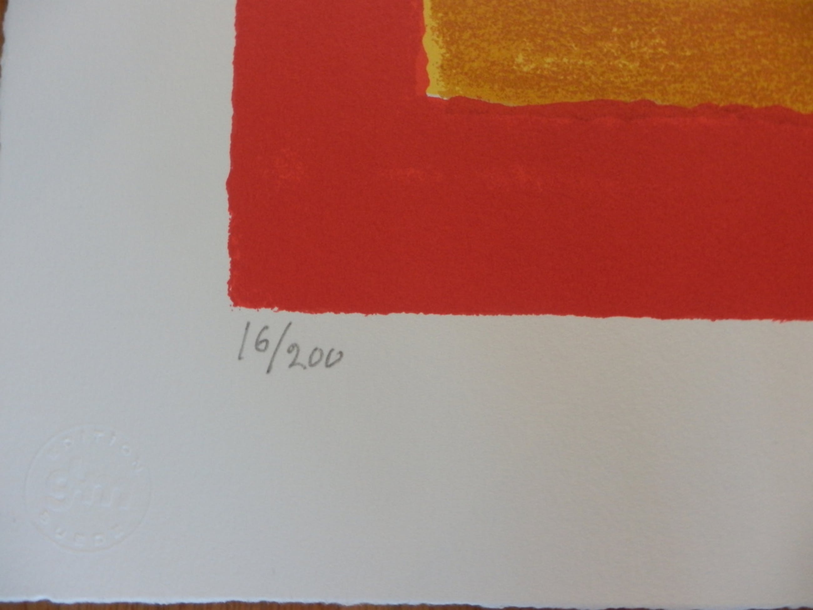 De kleurenzeefdruk op geschept papier verkeert in zeer goede staat