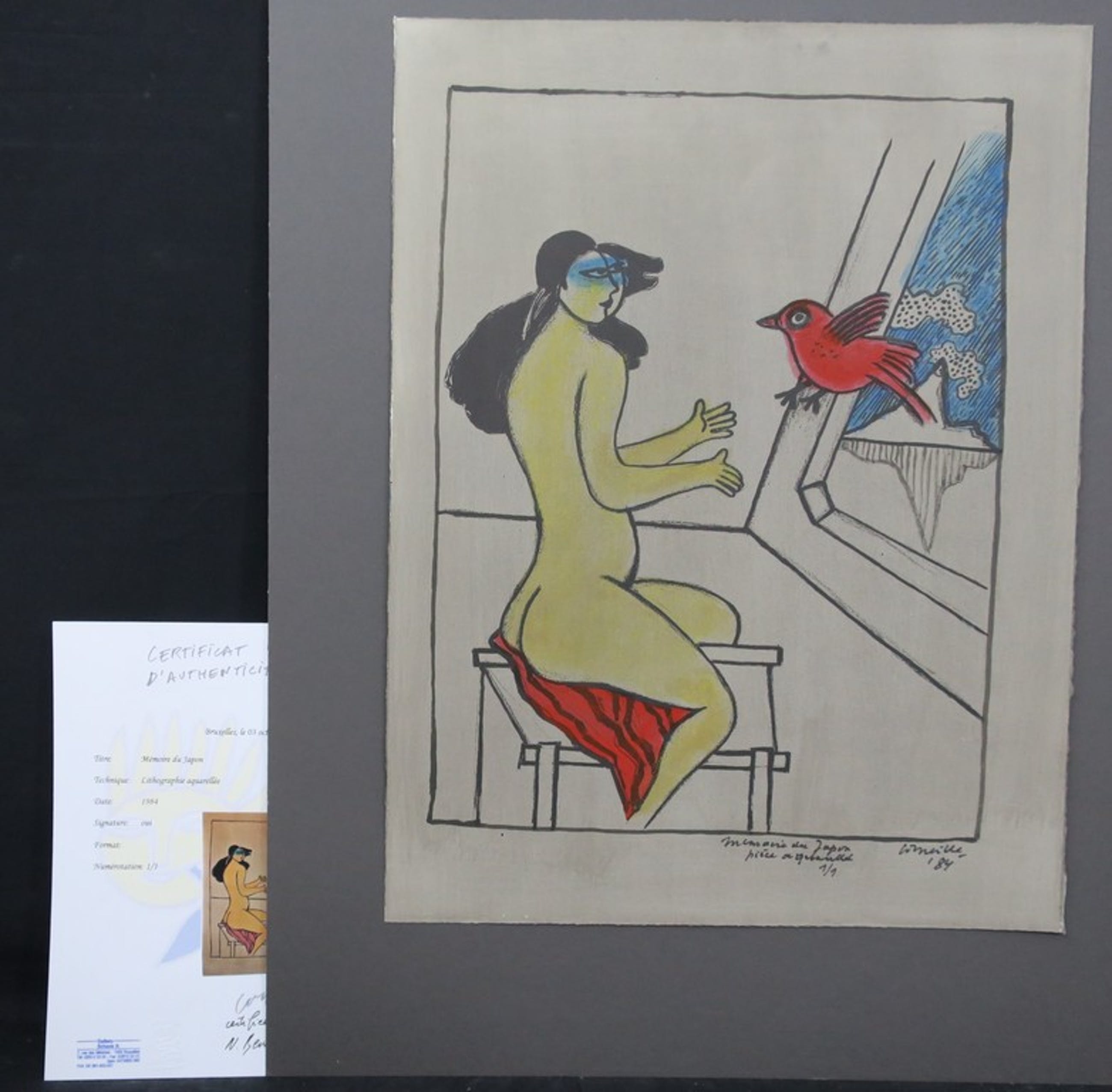 Unieke 'Lithographie aquarellée' van Corneille inclusief certificaat van authenticiteit