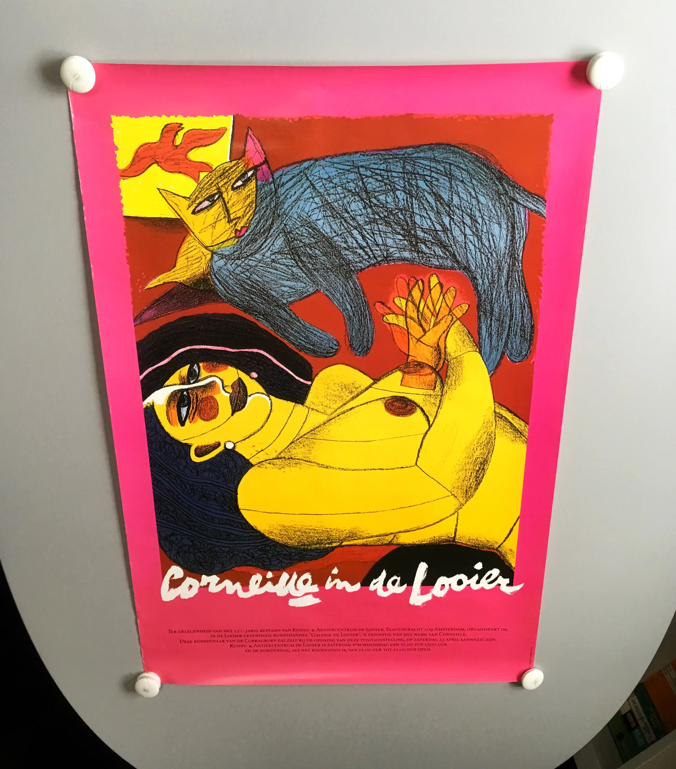 'Corneille in de Looier'. Dit is de tentoonstellingsposter van Corneille (Guillaume Cornelis van Beverloo) voor een expositie in de Looier kunstruimte in Amsterdam in 1988. Afmetingen: 87 x 59 cm. Onberispelijke staat.