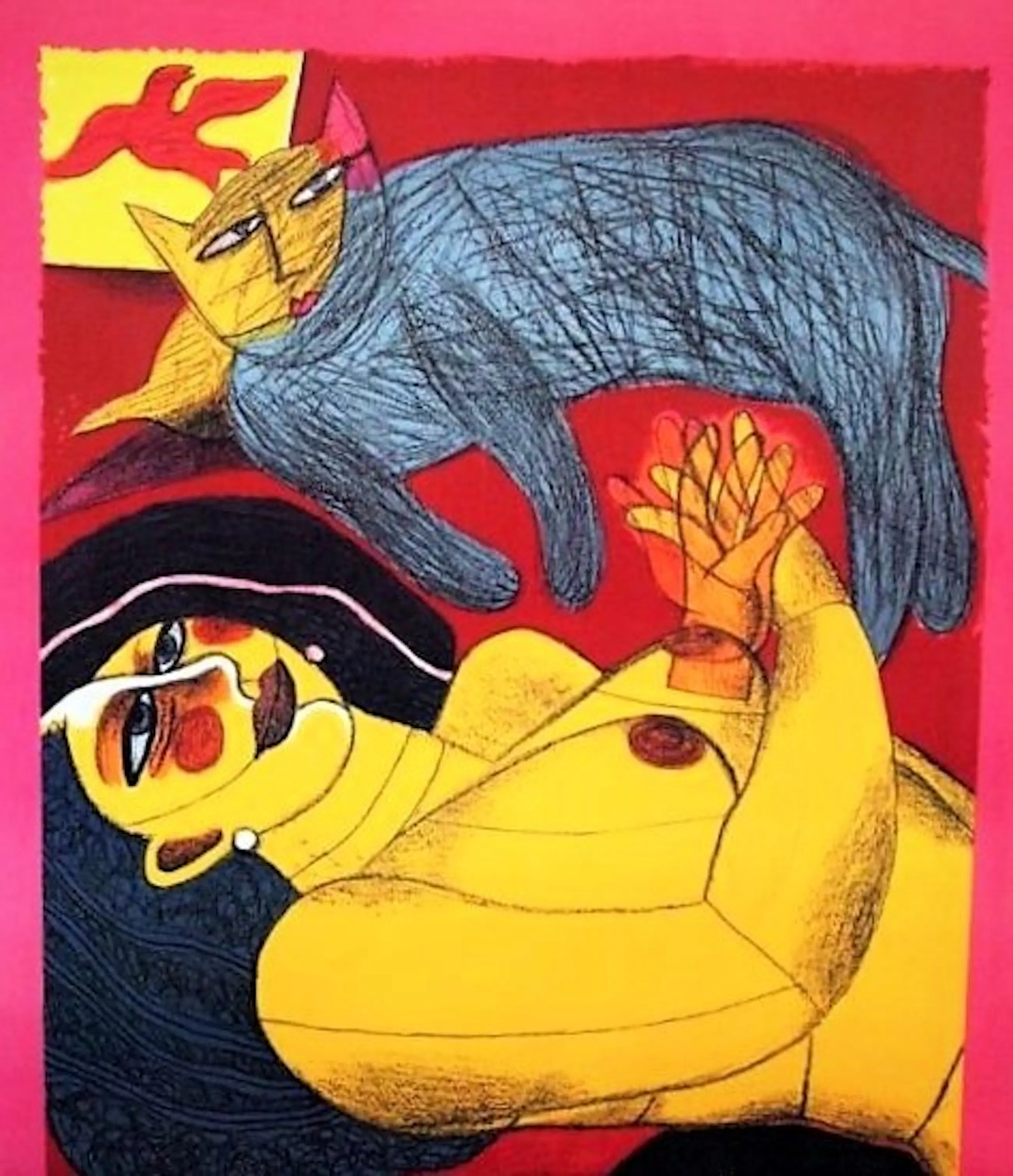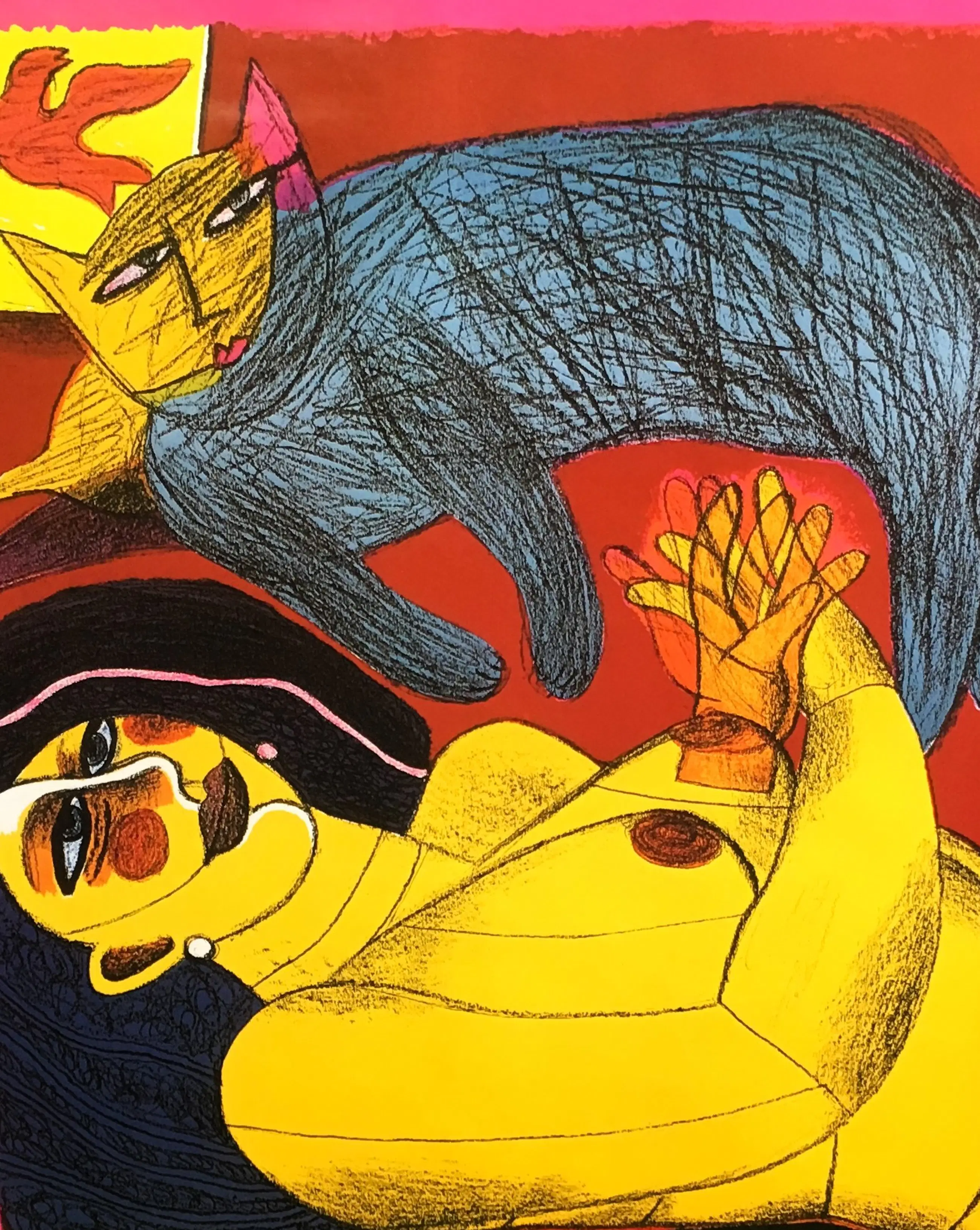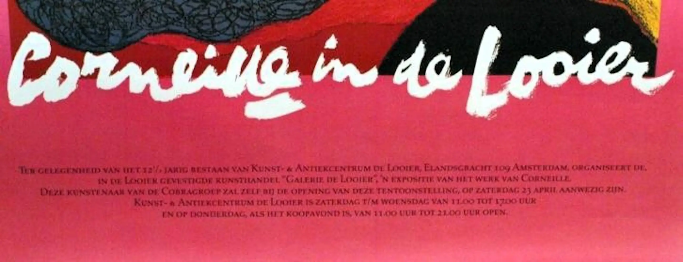 'Corneille in de Looier'. Dit is de tentoonstellingsposter van Corneille (Guillaume Cornelis van Beverloo) voor een expositie in de Looier kunstruimte in Amsterdam in 1988. Afmetingen: 87 x 59 cm. Onberispelijke staat.