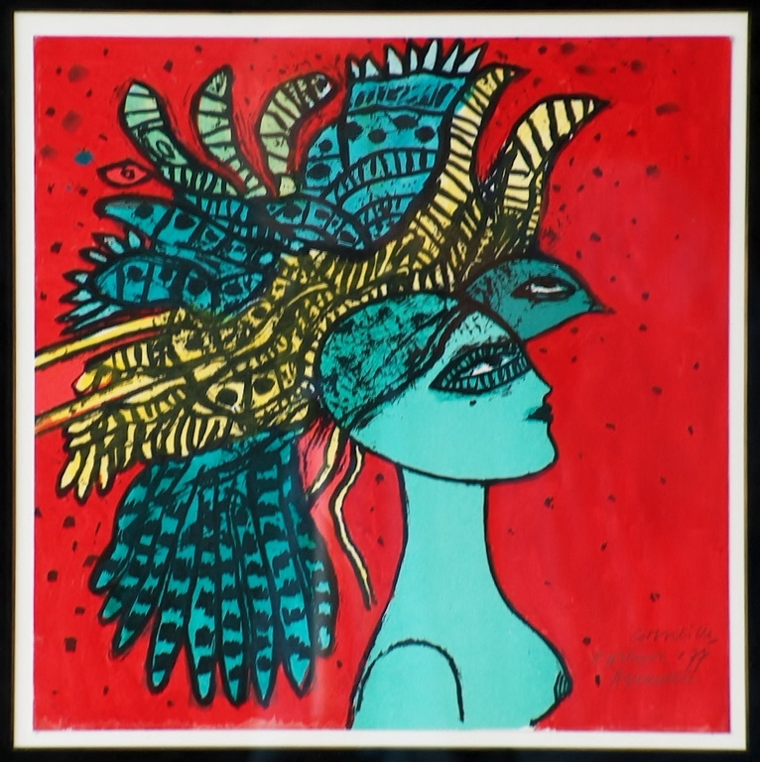 Corneille (Cornelis Beverloo), unieke ingekleurde litho, gesigneerd, gedateerd ('77) en voorzien van de tekst -Epreuve Aquarellée-.