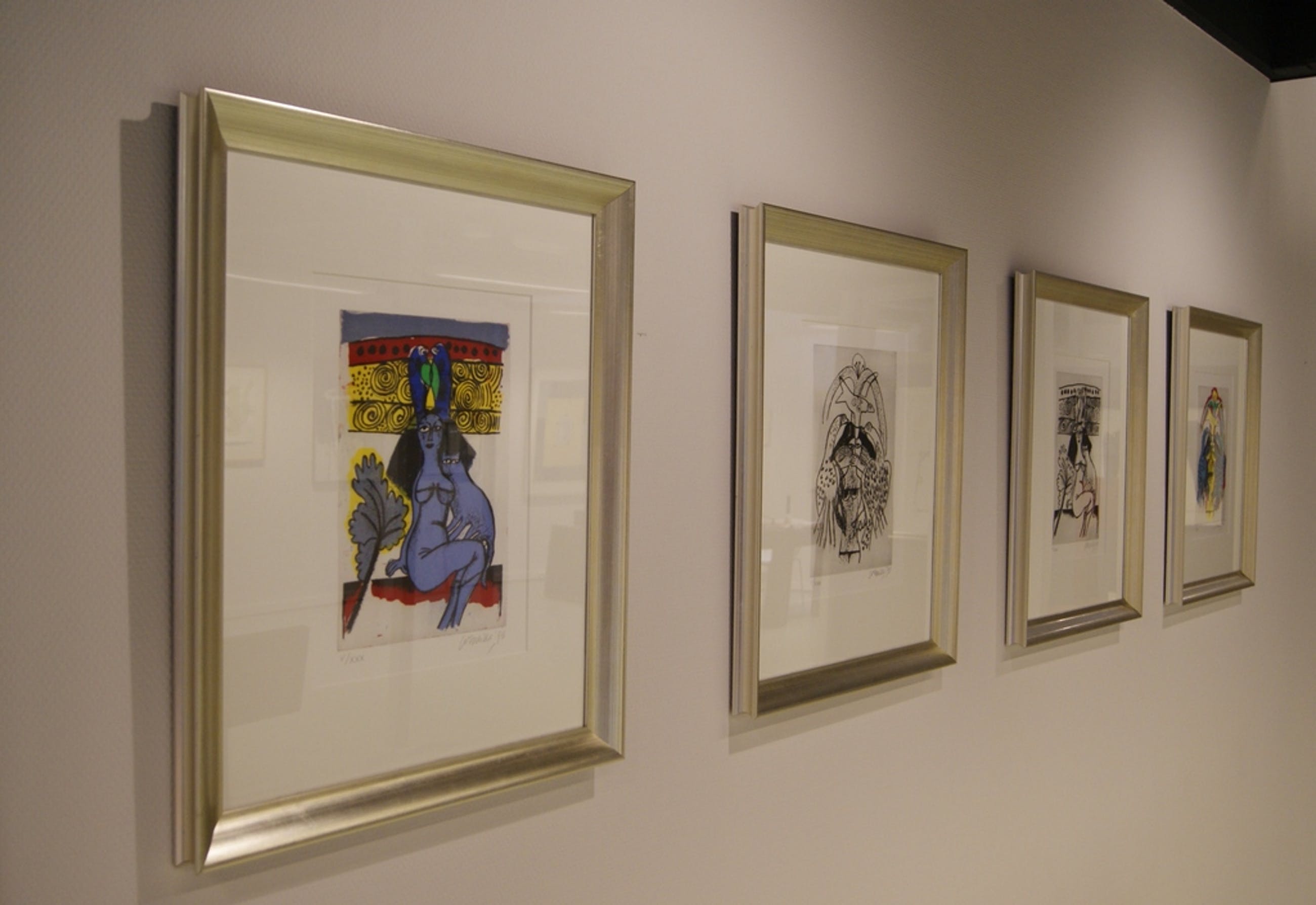 Een prachtig ingelijste ets van Corneille uit de 'Femmes et oiseaux' serie.