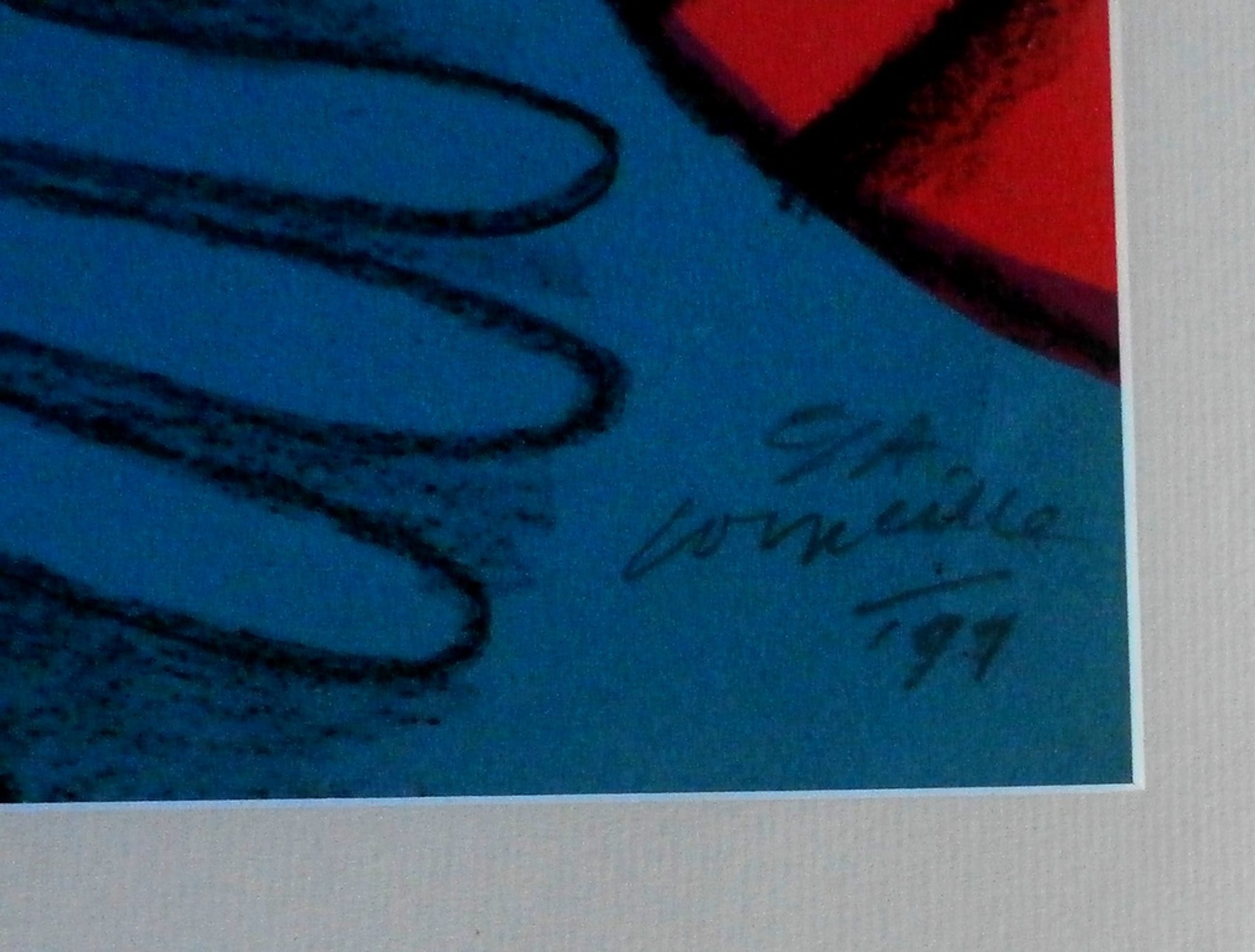 Mooi ingelijst werk van Corneille met heldere kleuren. Nummer: E.A. Jaar: 1997. Titel: onbekend. Het werk is rechtsonder gesigneerd door de kunstenaar.De authenciteit van dit werk wordt volledig gegarandeerd. Een certificaat van echtheid kan, op aanvraag, worden meegeleverd.