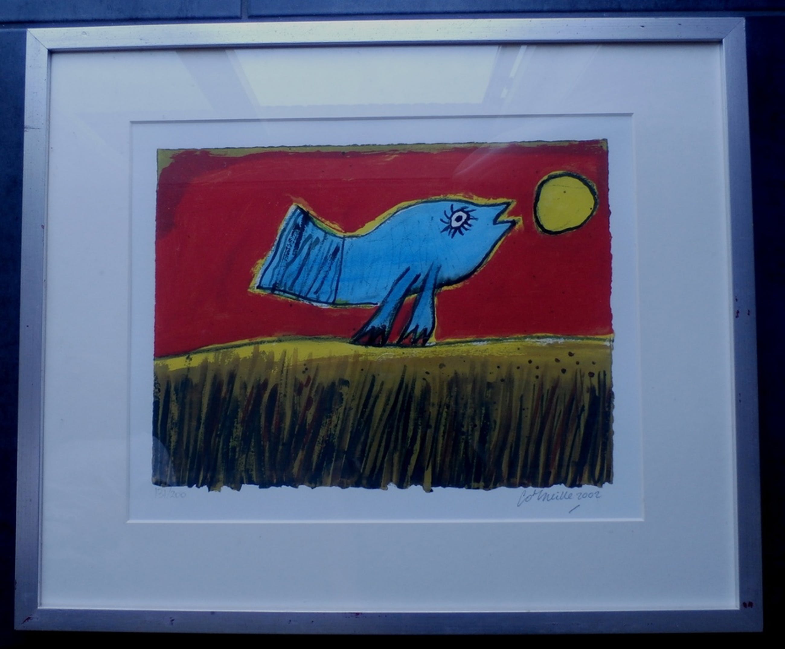 Ingelijste zeefdruk van Corneille uit 2002. Nummer: 131/200. Afmetingen incl lijst: H53 x b63. Afmetingen voorstelling: H30 x b39.5.