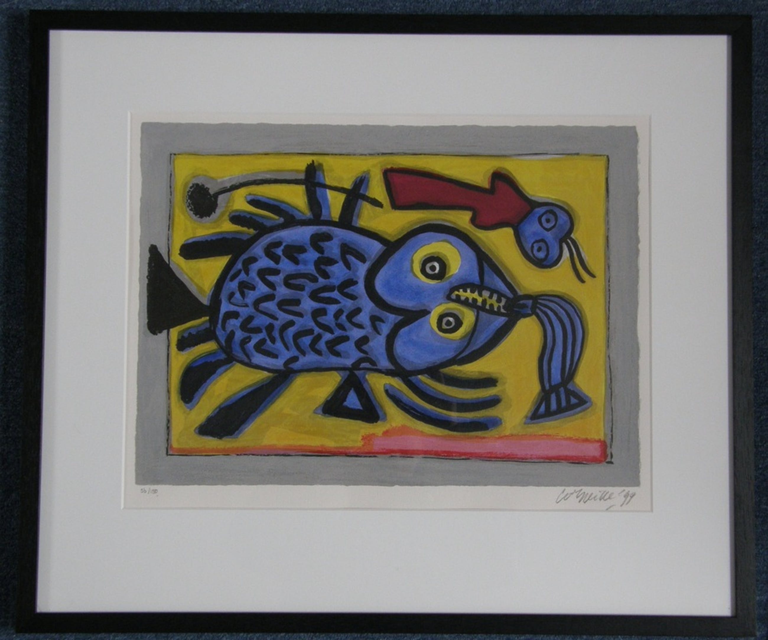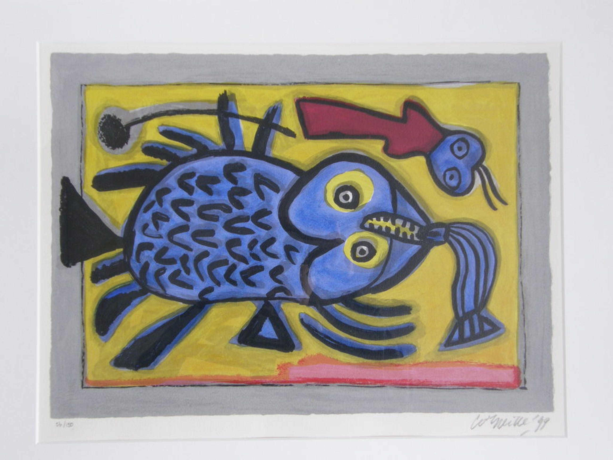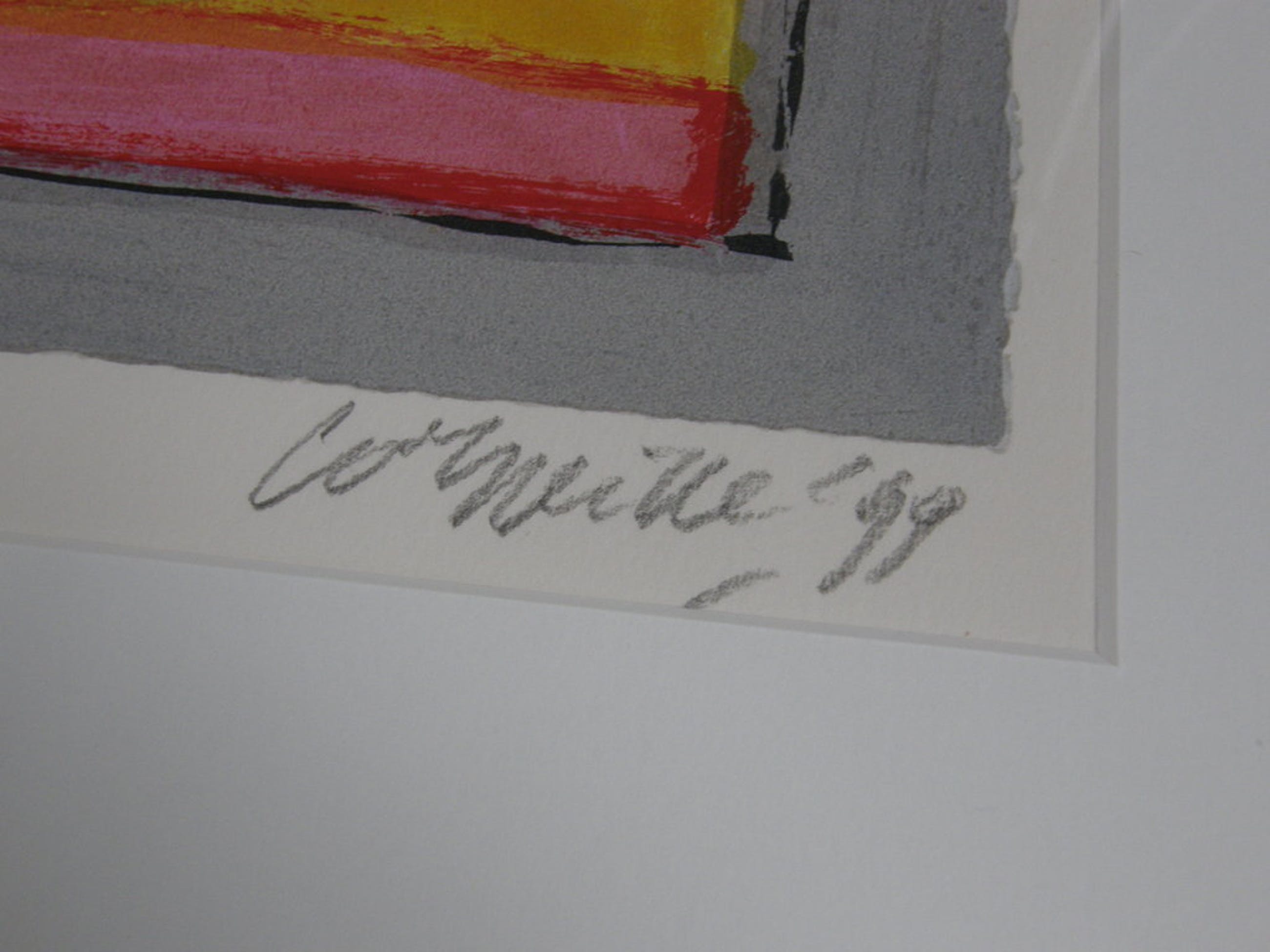 Mooie grote zeefdruk van Corneille, genummerd 56/150, ingelijst en met potlood gesigneerd.