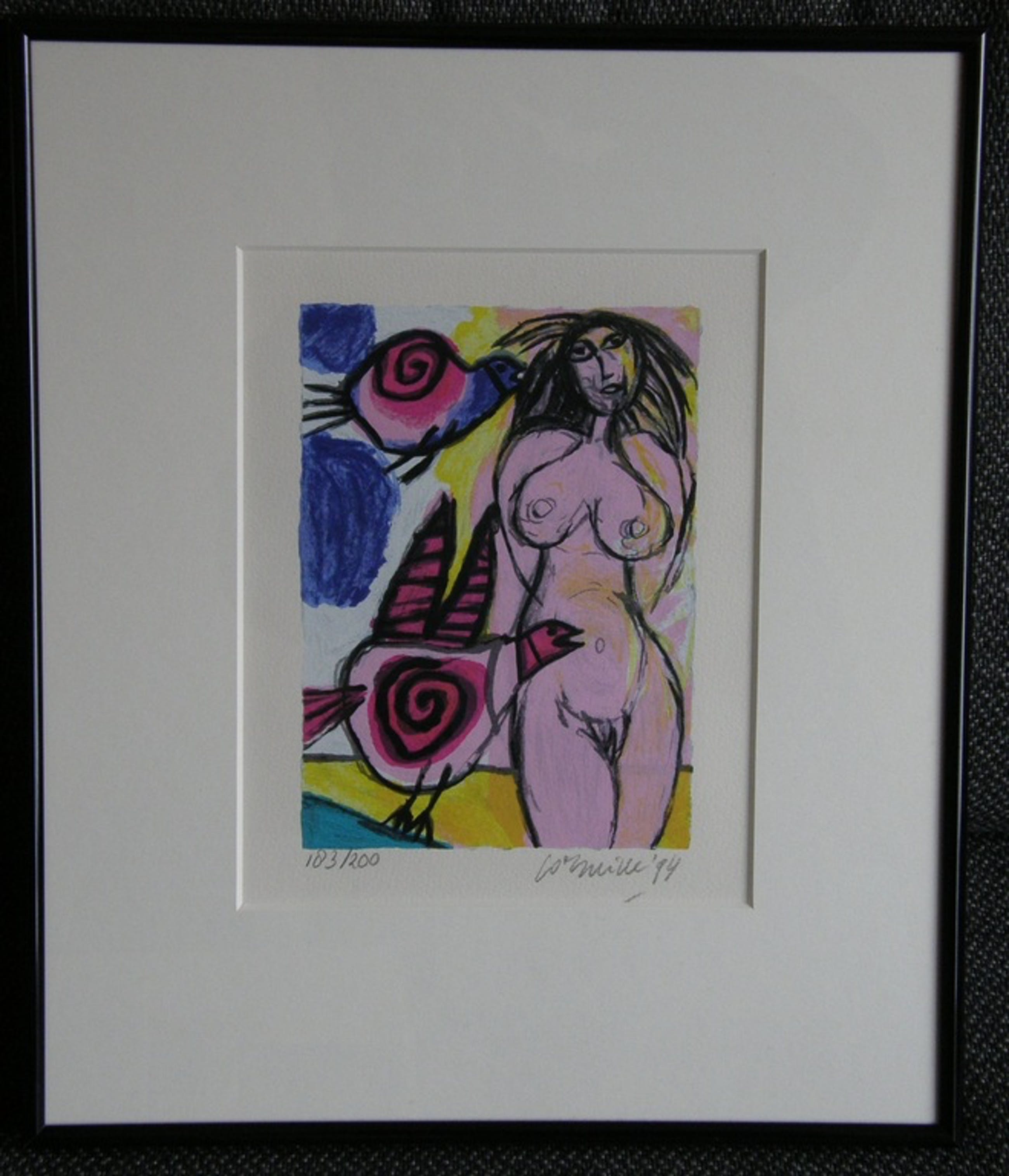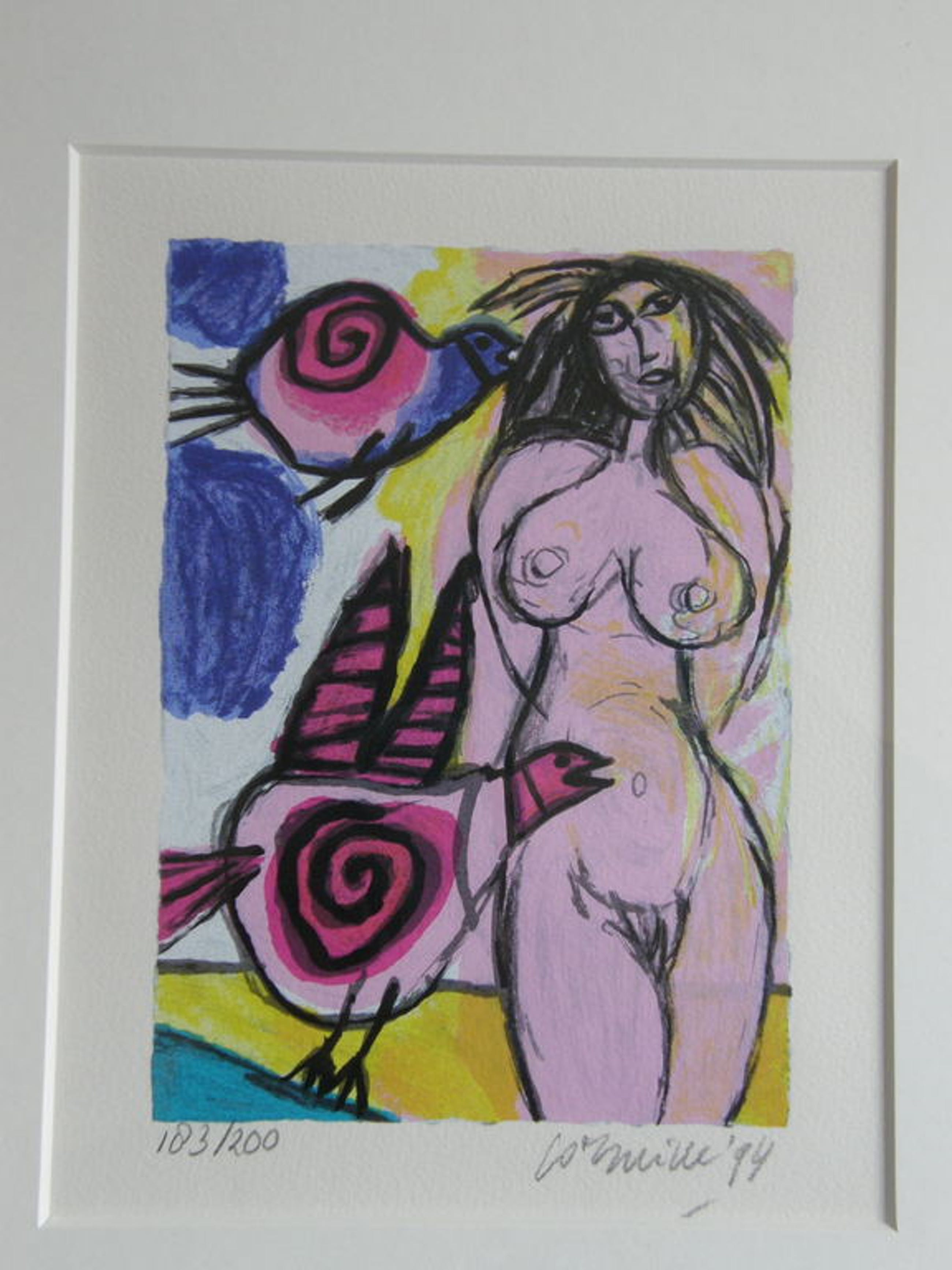 Zeefdruk van Corneille in een mooie lijst, genummerd 183/200, met potlood gesigneerd.