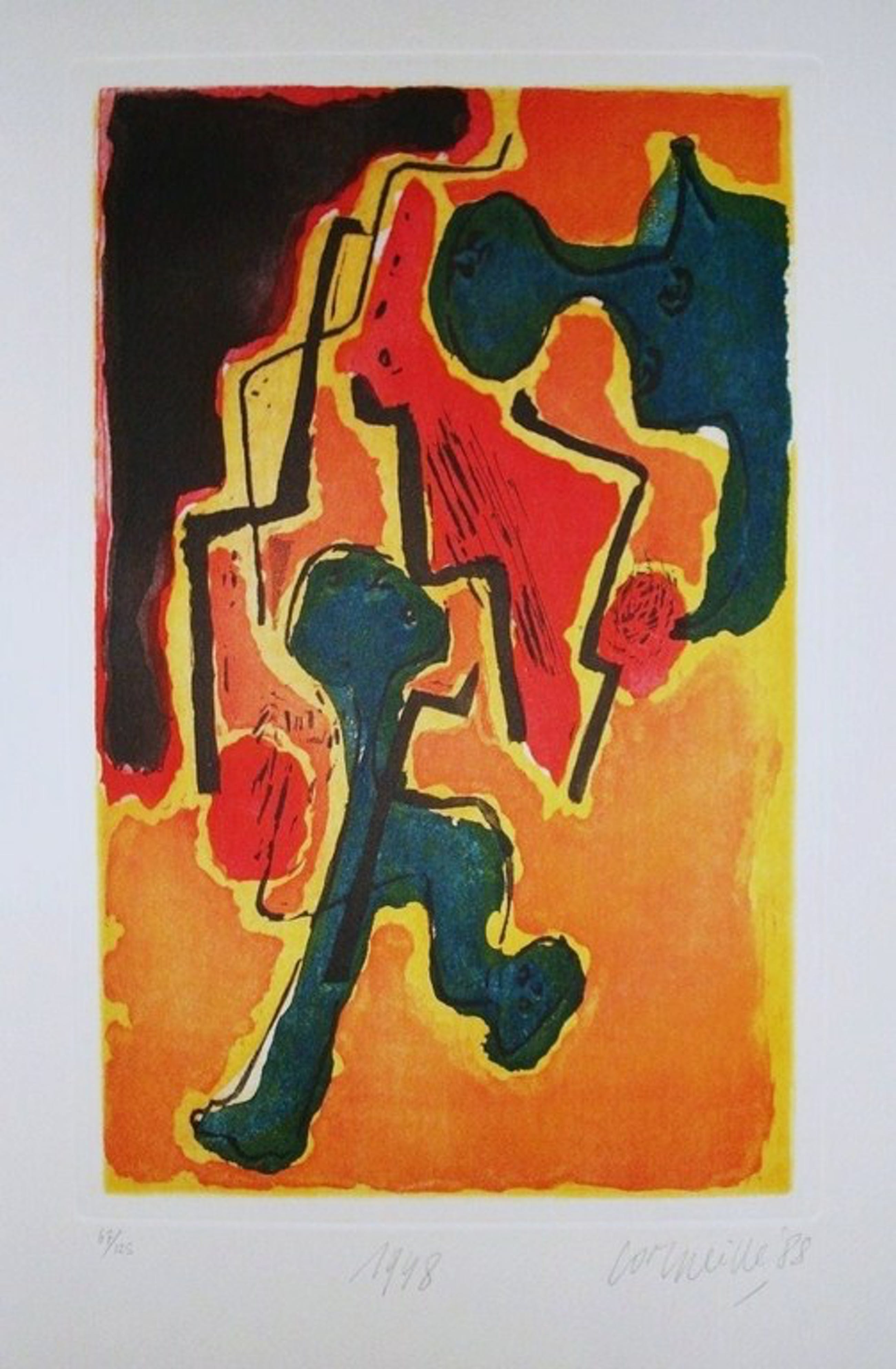 Een zeer fraaie kleuren ets van Corneille uit 1988.