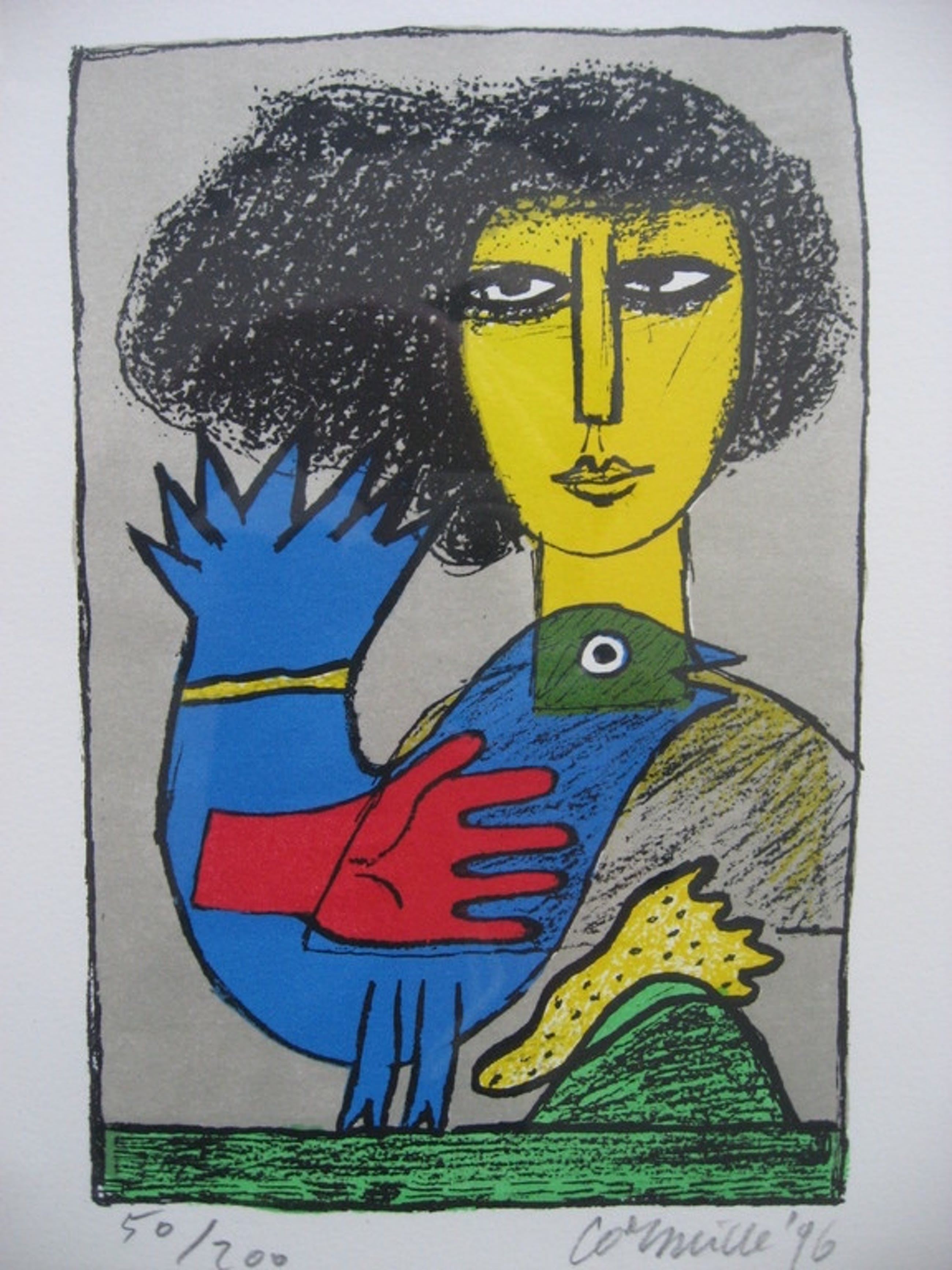 Mooie litho van Corneille uit 1996. Ingelijst in een zilveren houten lijst met passe-partout.