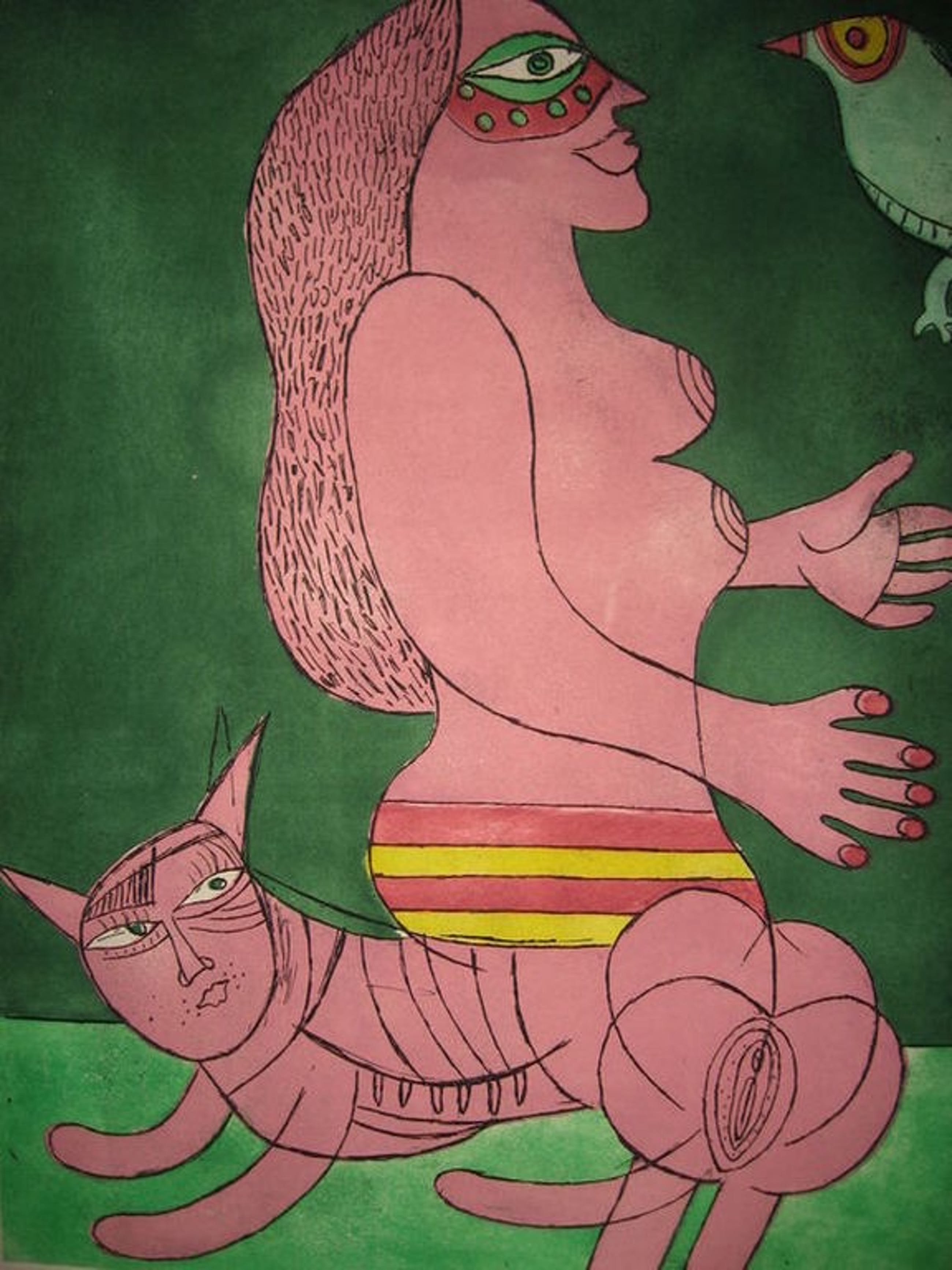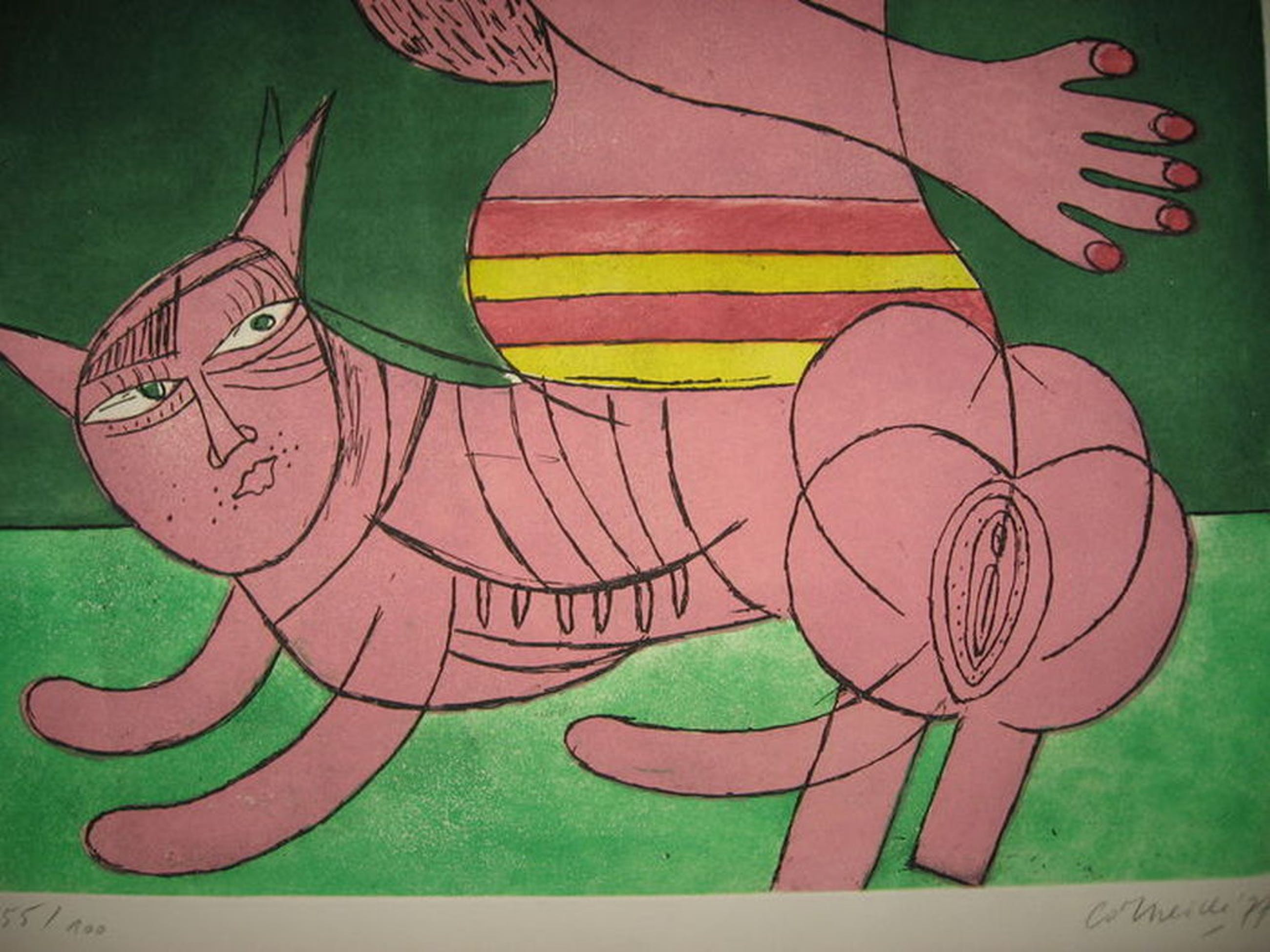 Prachtige ets/aquatint op geschept papier van Corneille uit 1977 in een kleine oplage. Uitgegeven door GKM uit Malmö.