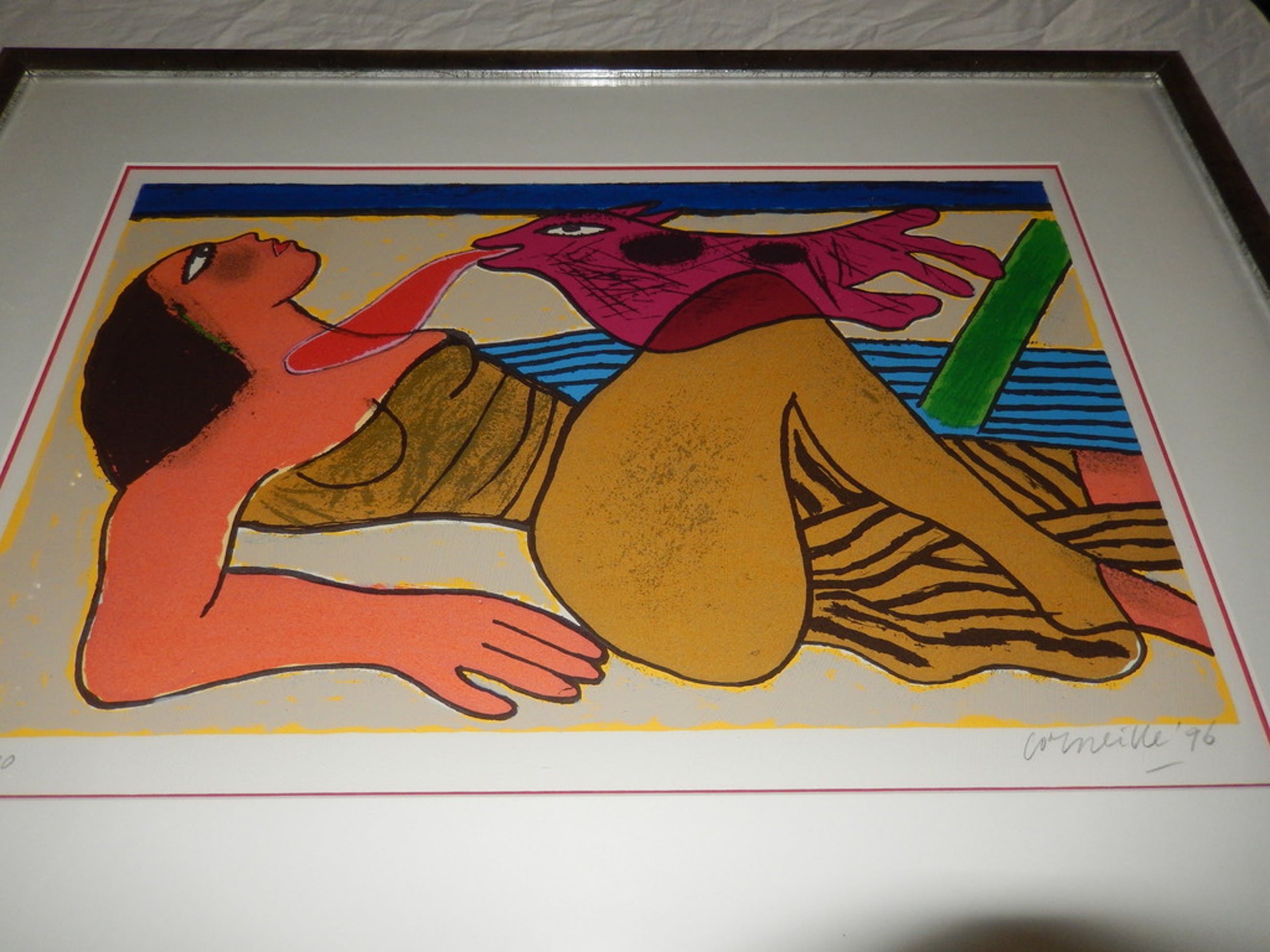 prachtige ingelijste lithografie. Handgesigneerd Corneille '96.
