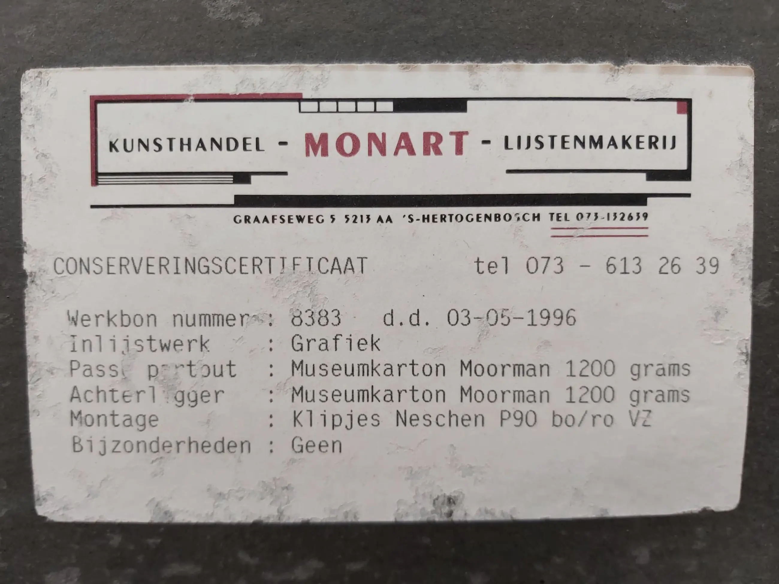 Professioneel ingelijst in een mooie houten zilverkleurige lijst in 1996