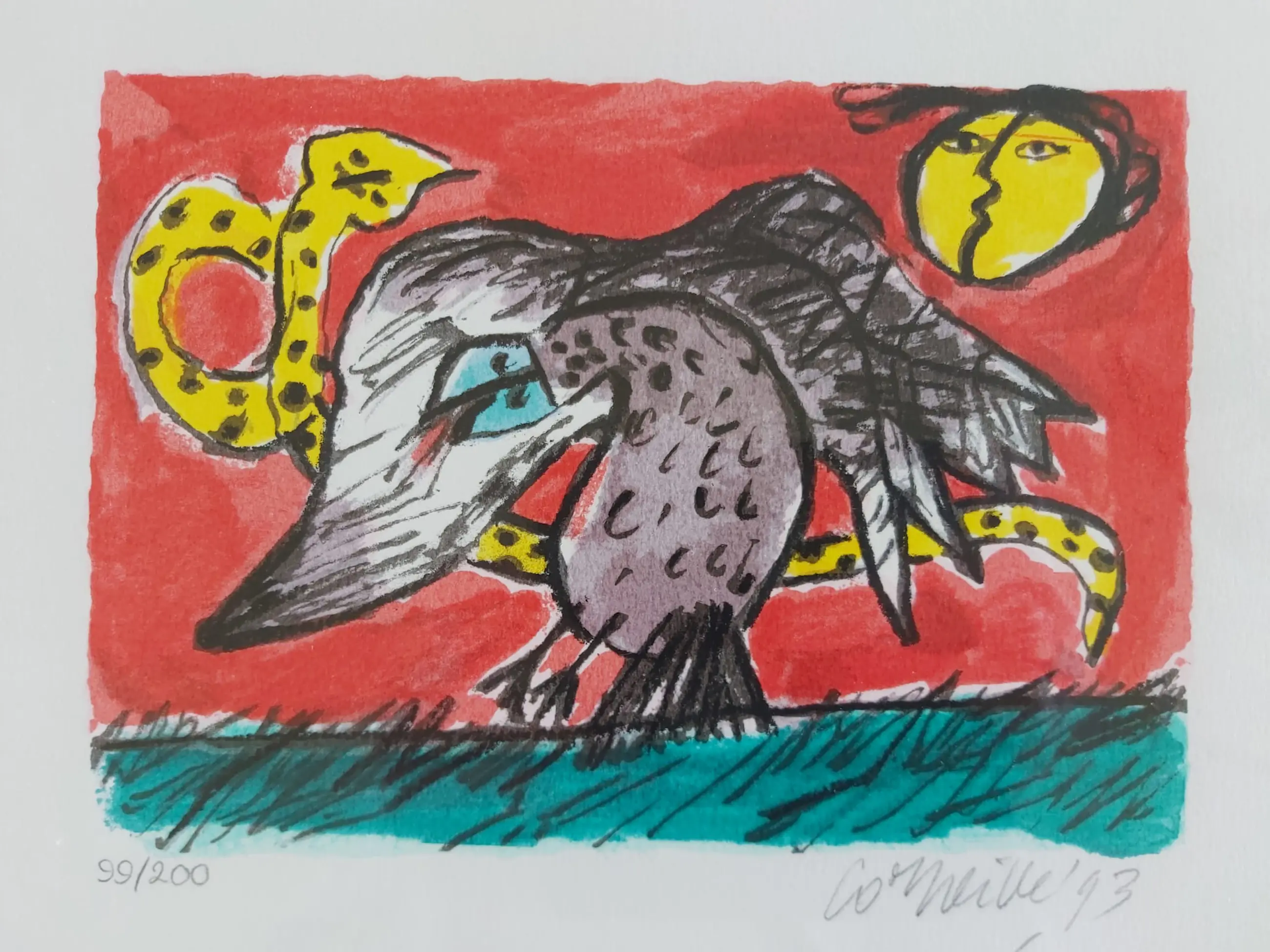 Hele fraaie litho van Corneille uit België komt uit de map Mémoire de Bali I. Jaar: 1993. Het werk is rechtsonder door de kunstenaar hand gesigneerd.