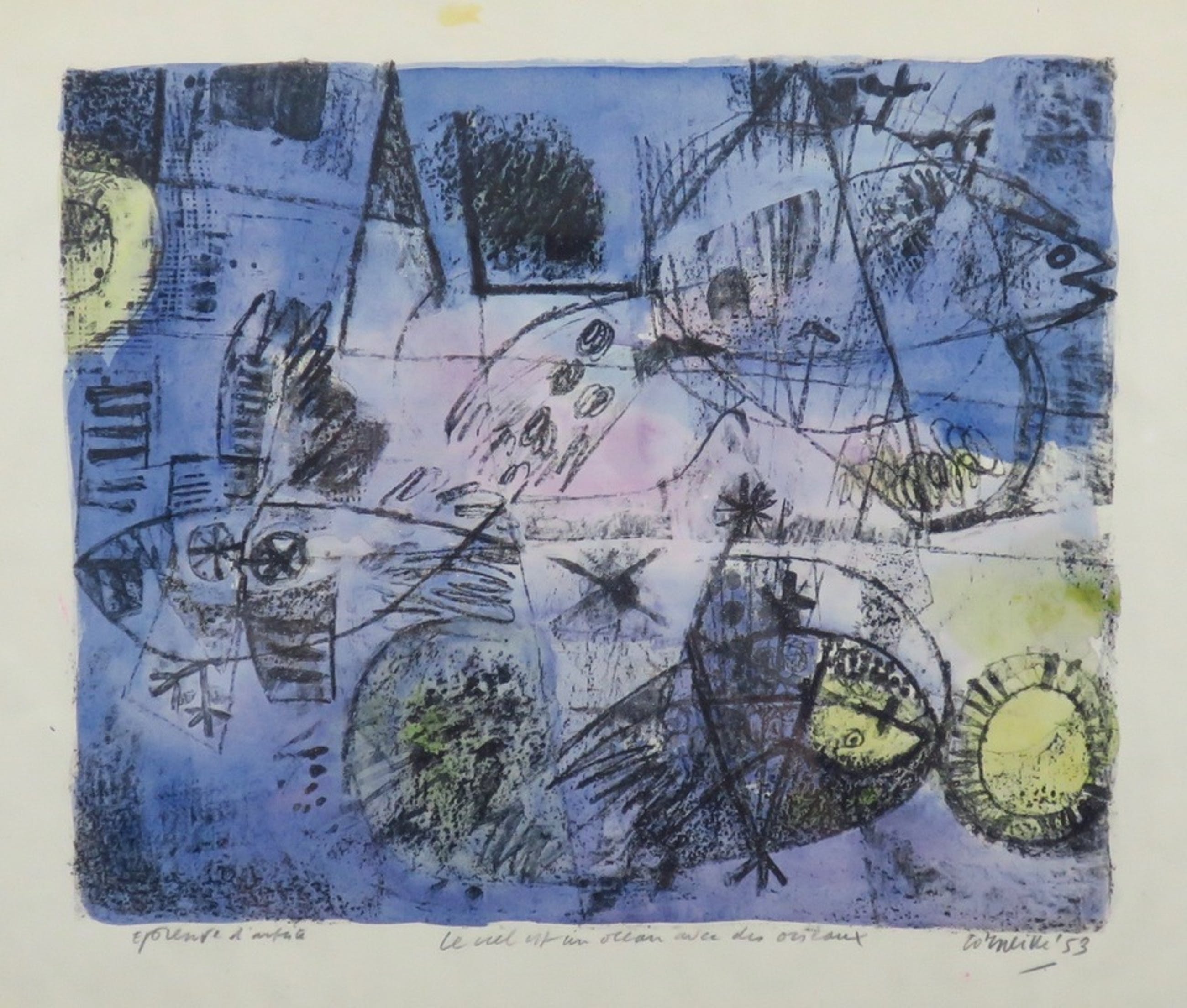 Handgekleurde litho van Corneille inclusief fotocertificaat van authenticiteit. De zwarte voorstelling is een litho maar alle kleur is handmatig aangebracht.