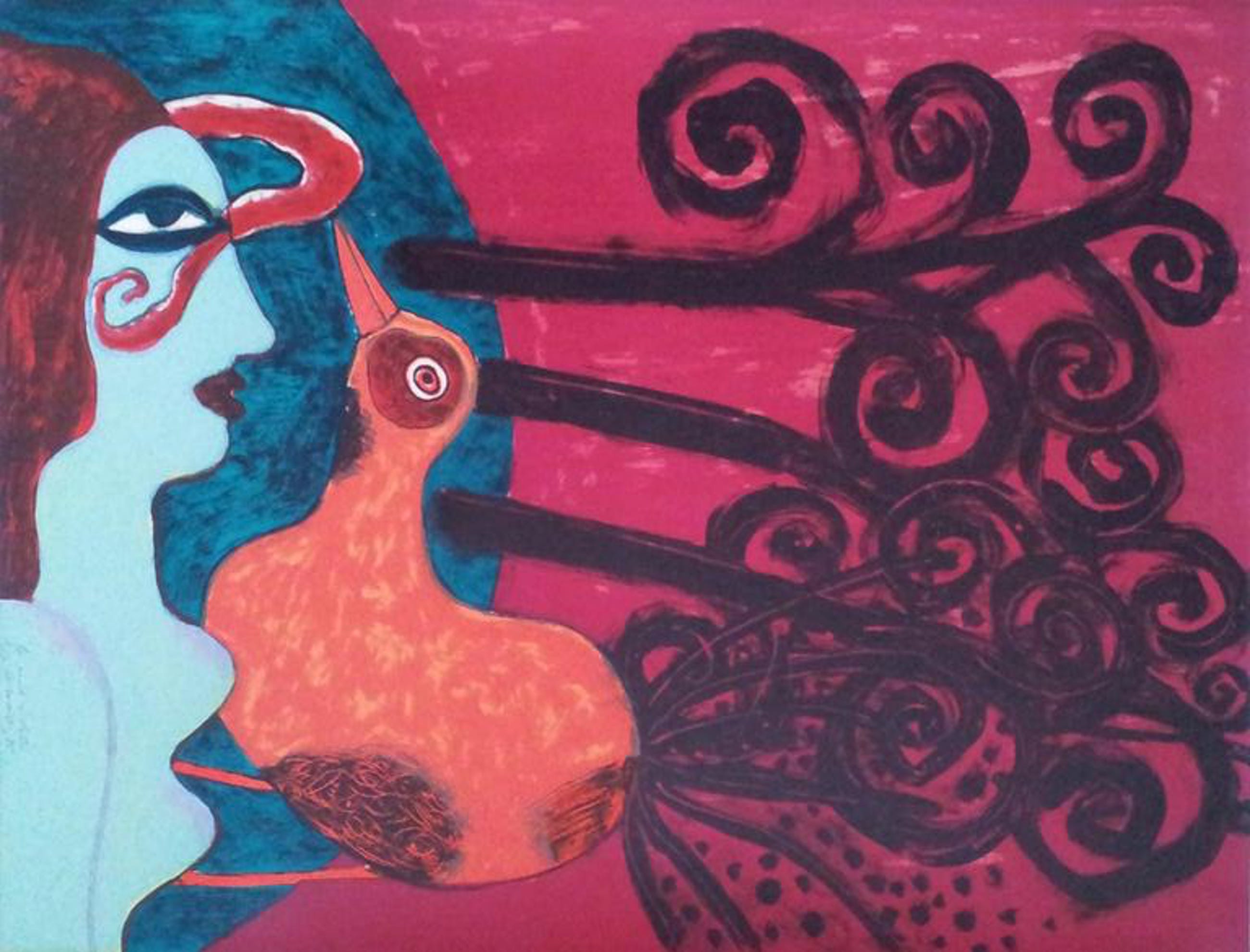 Prachtige litho van de beroemde Cobra kunstenaar Corneille: "La Nuit Violette".