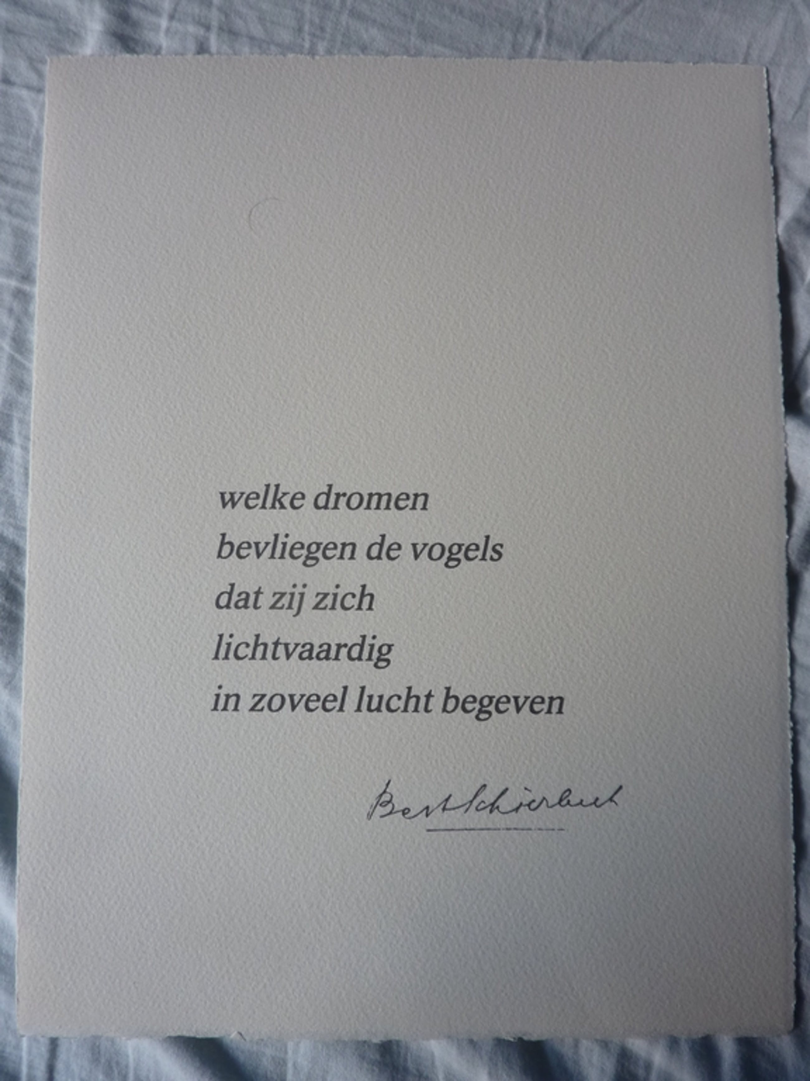 Genummerd: losse bladen: IL/L in Romeinse cijfers (= 50 exemplaren) Ingelijst blad: 60/200