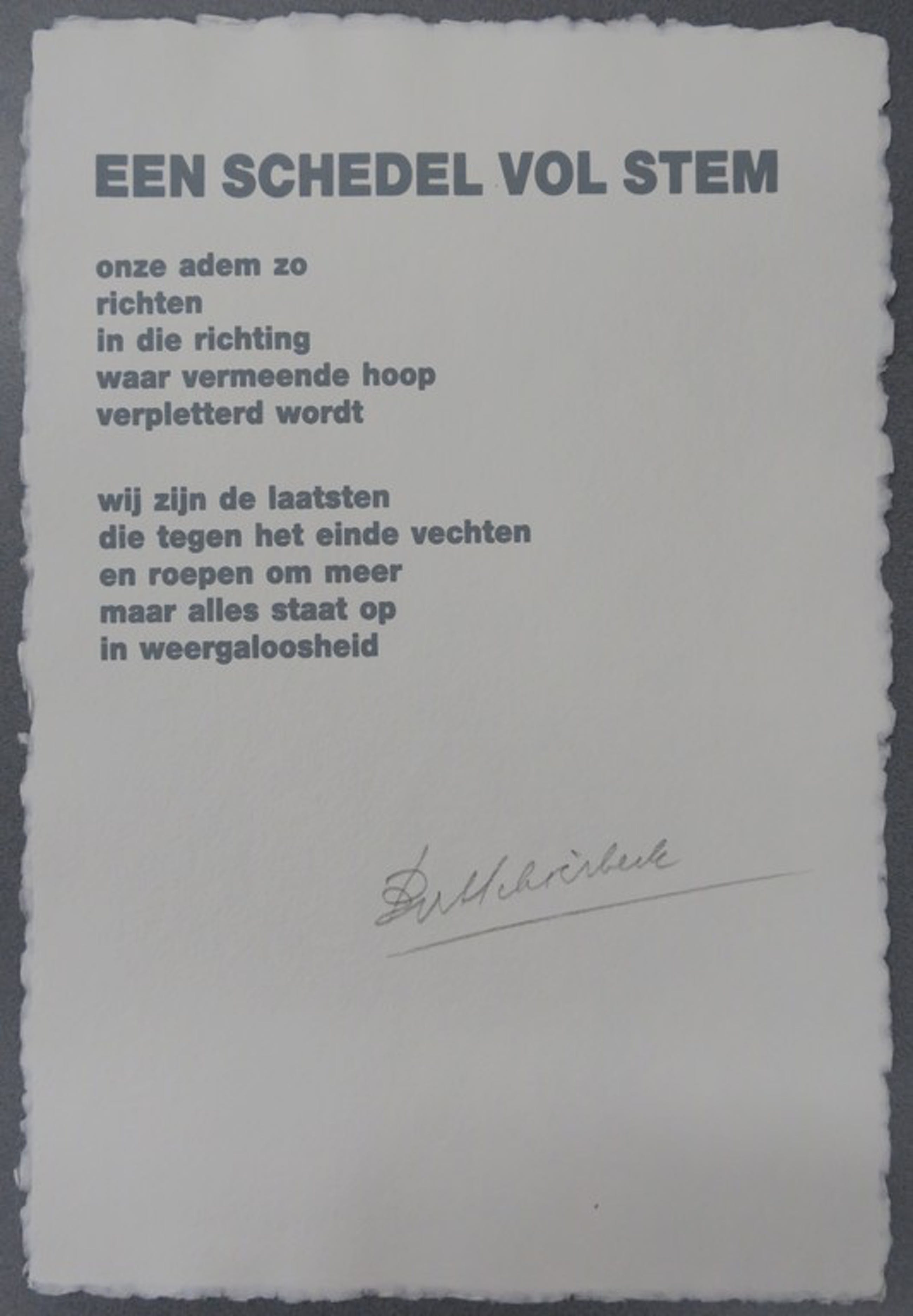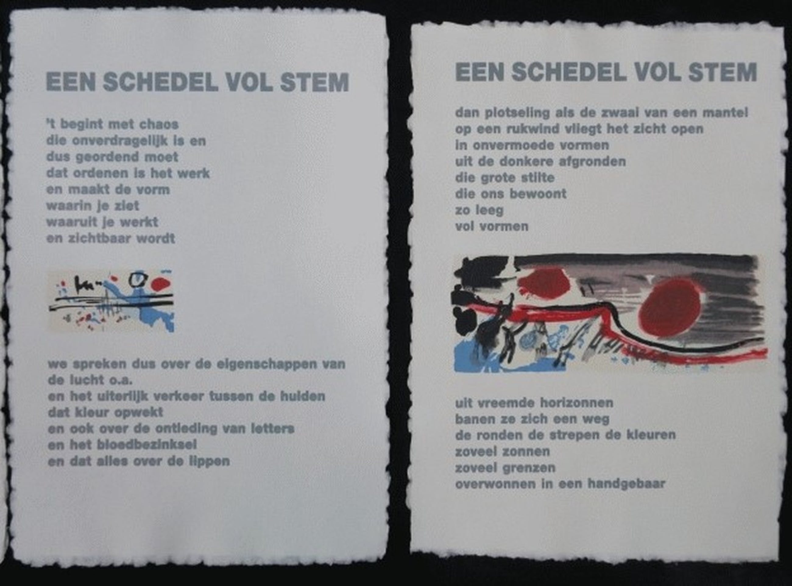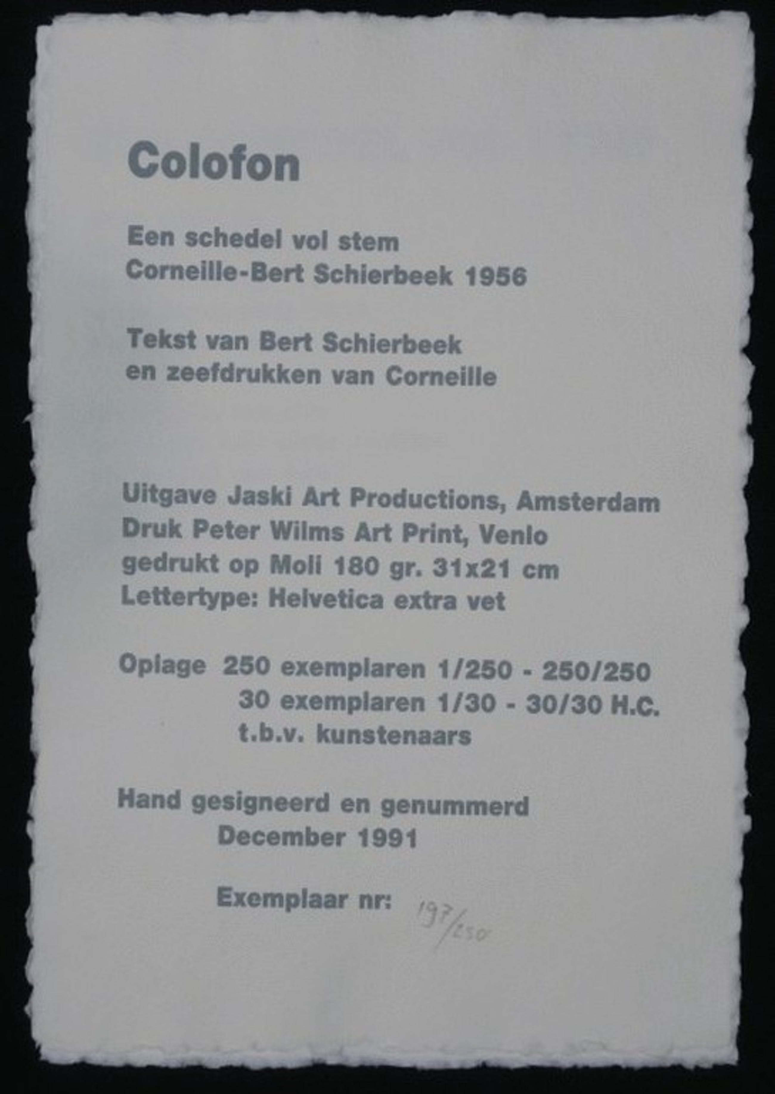Map Een schedel vol stem met gedichten van Bert Schierbeek uit 1991. De zeefdrukken van Corneille ontbreken.