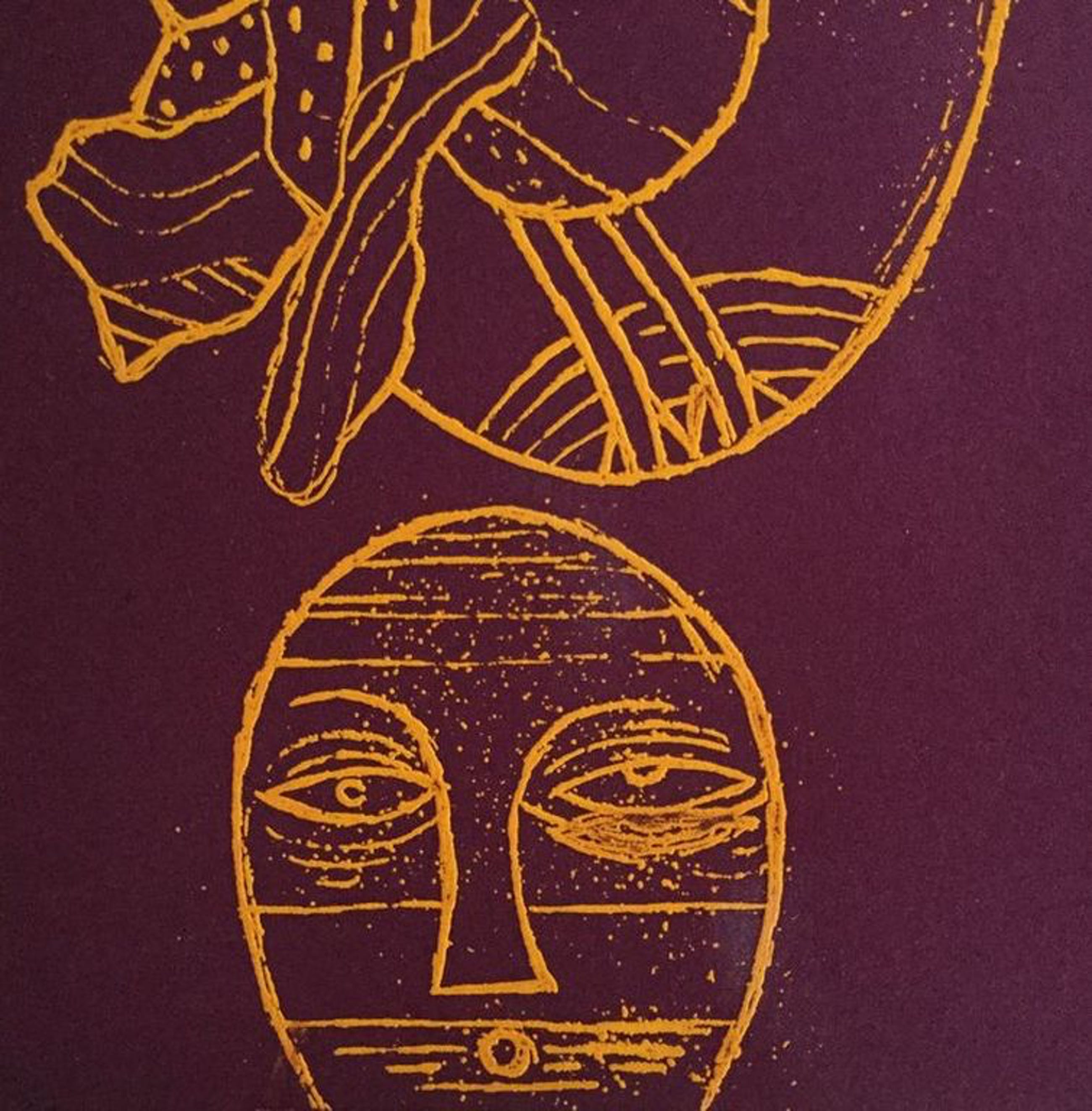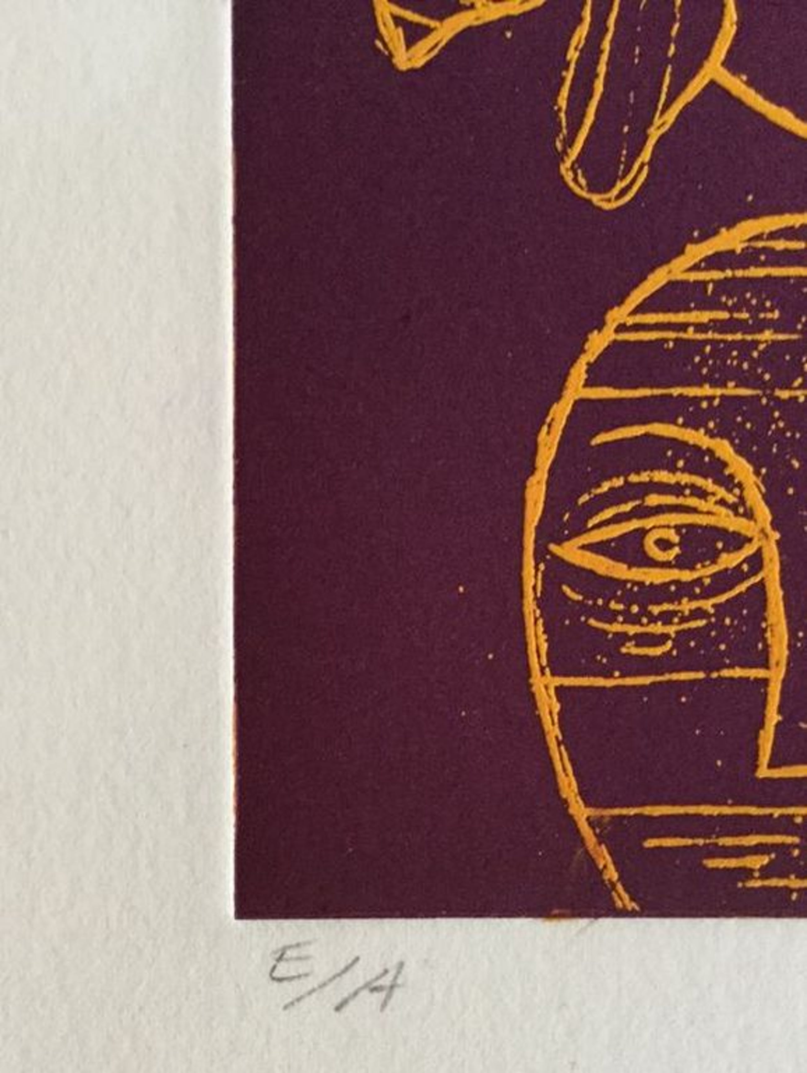 Prachtige ets uit 1977 gemaakt van suiker. Deze gele lijnen lichten lichtjes op als de lichtinval er op schijnt. Iets totaal anders dan al zijn later werk. Is een " épreuve artiste".