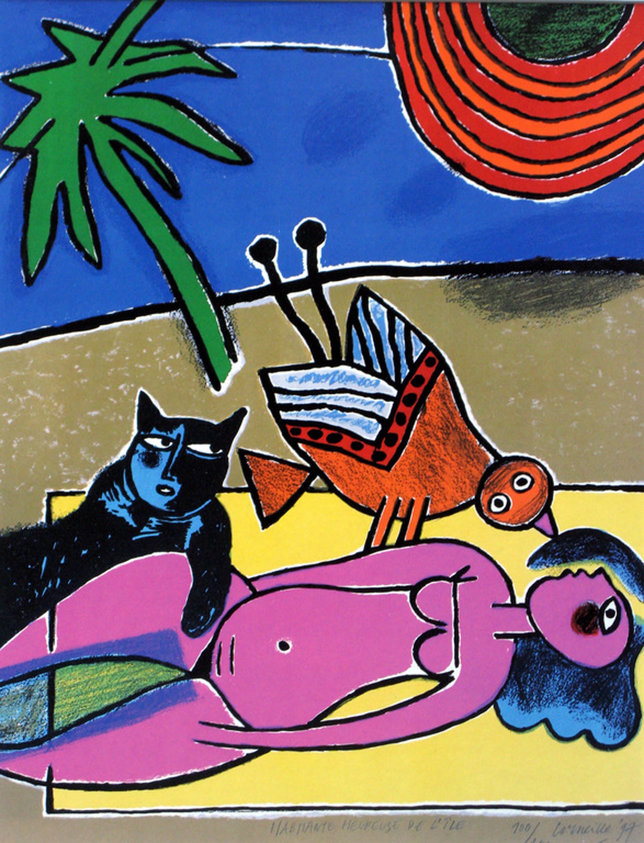 Betreft een mooi werk van Corneille lithografie uit oplage van 100. Dit is exemplaar 100. Het werk is rechtsonder betiteld en gesigneerd, 100/100. Het werk verkeert in perfecte staat, is professioneel ingelijst in 100% zuurvrije passepartout en kan zondermeer direct aan de wand worden opgehangen.
