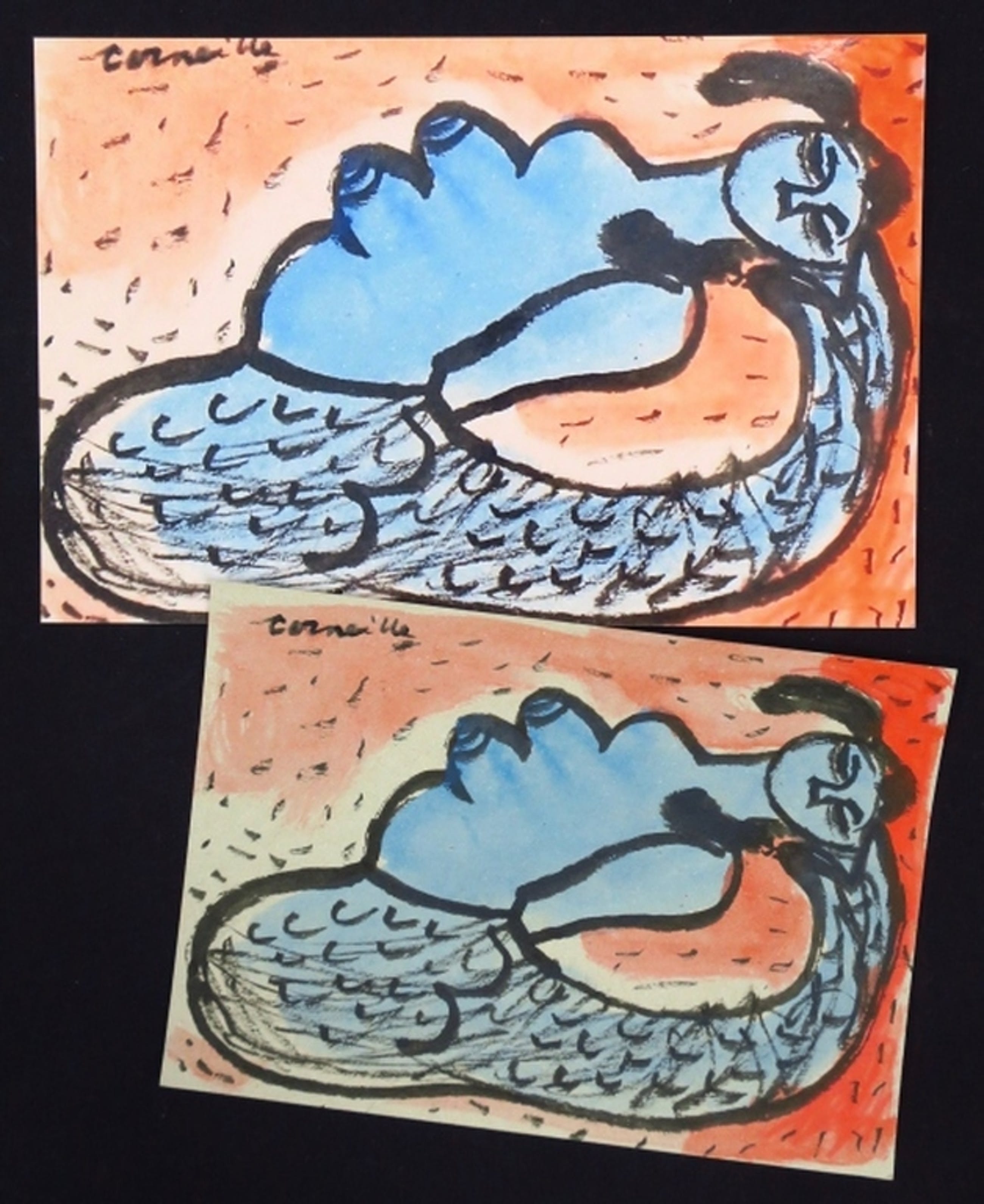 Leuk klein werkje van Corneille. Met fotocertificaat getekend door Natasja Beverloo (zijn weduwe). Volledig gegarandeerd.