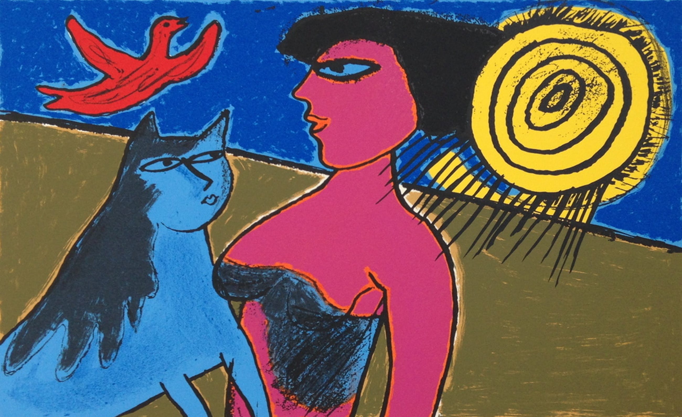 Zeer fraaie originele kleuren-lithografie uit 1996 van Corneille (1922-2010)
