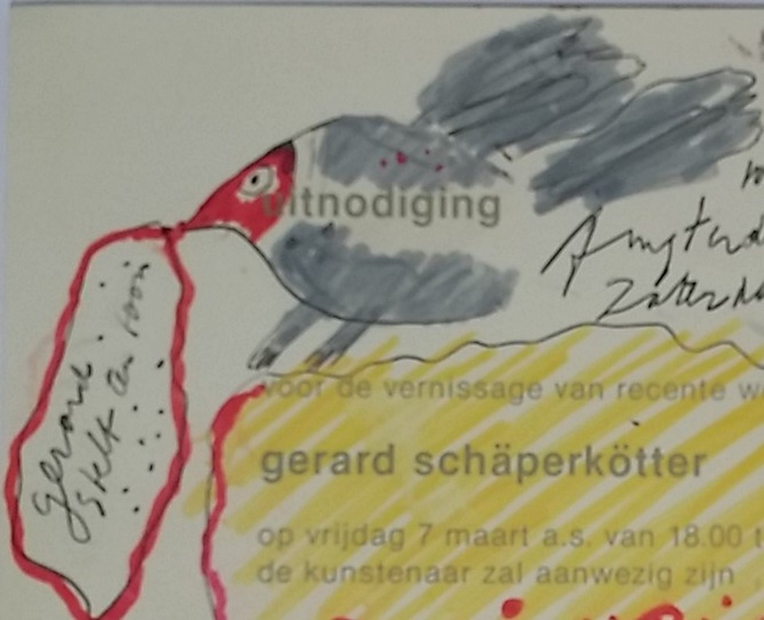 Uitnodigingskaart van Galerie Krikhaar aan Corneille