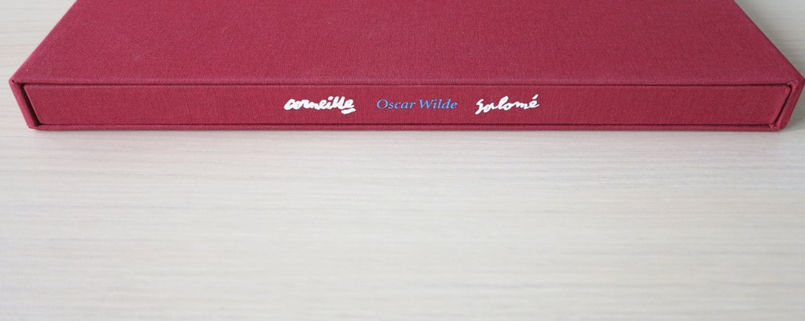Salome van Corneille. Complete boek met daarin 13 verschillende zeefdrukken. 2 zeefdrukken zijn handgesigneerd en met hetzelfde nummer (48/100). Het boek is voorzien van gedichten van Oscar Wilde en zit in een "luxe cassette / over doos".Boek zelf ook nog eens gesigneerd door Corneille en genummerd (48/100). De maat is 31,5 x 33 cm en verkeerd in nieuwstaat.