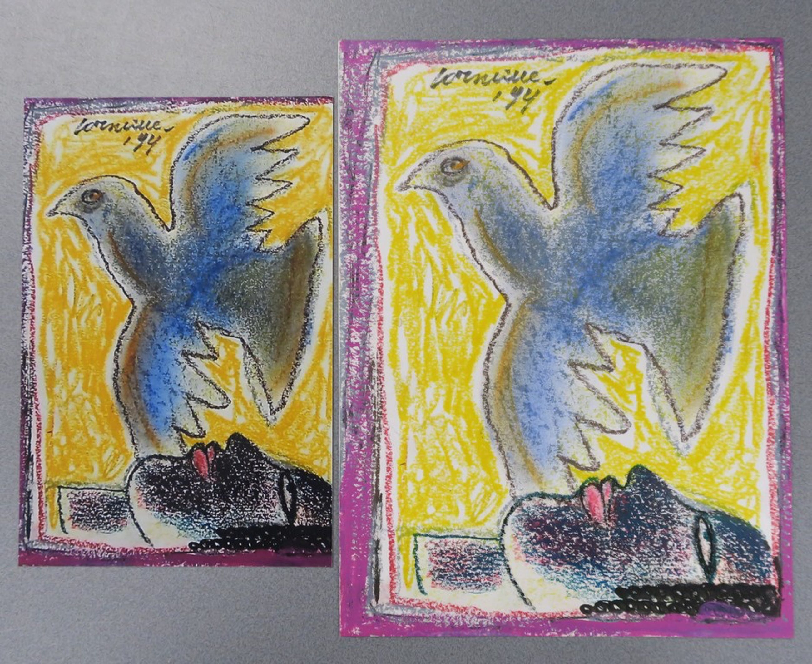 Zeer mooie pasteltekening van Corneille uit 1994! Let op: met Foto-Certificaat!