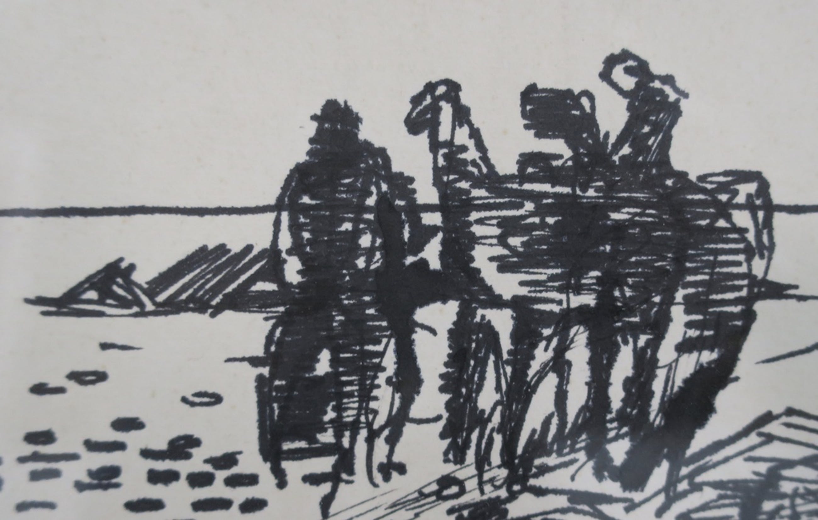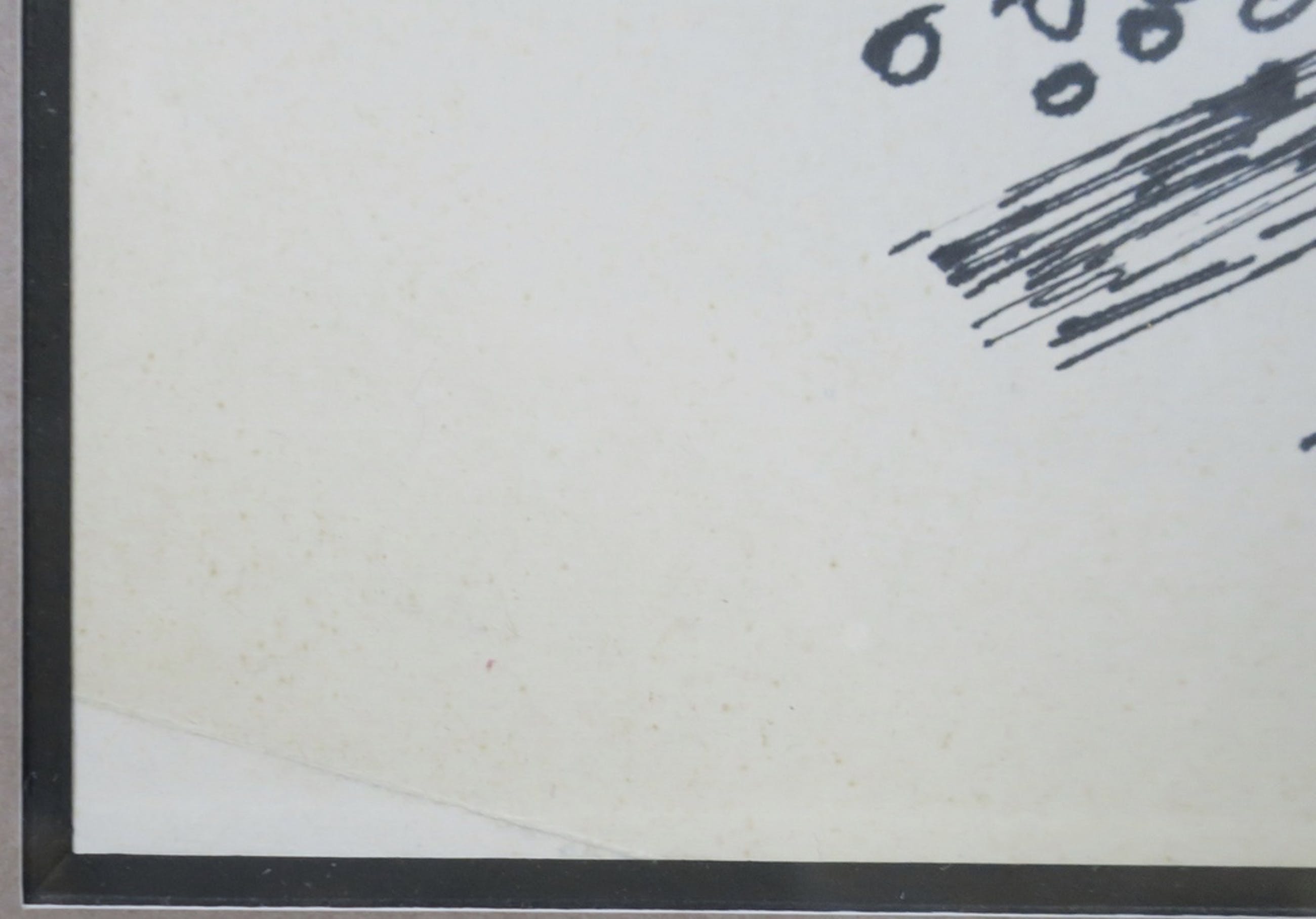 Ingelijste pentekening van Corneille met foto-certificaat getekend door de weduwe van Corneille