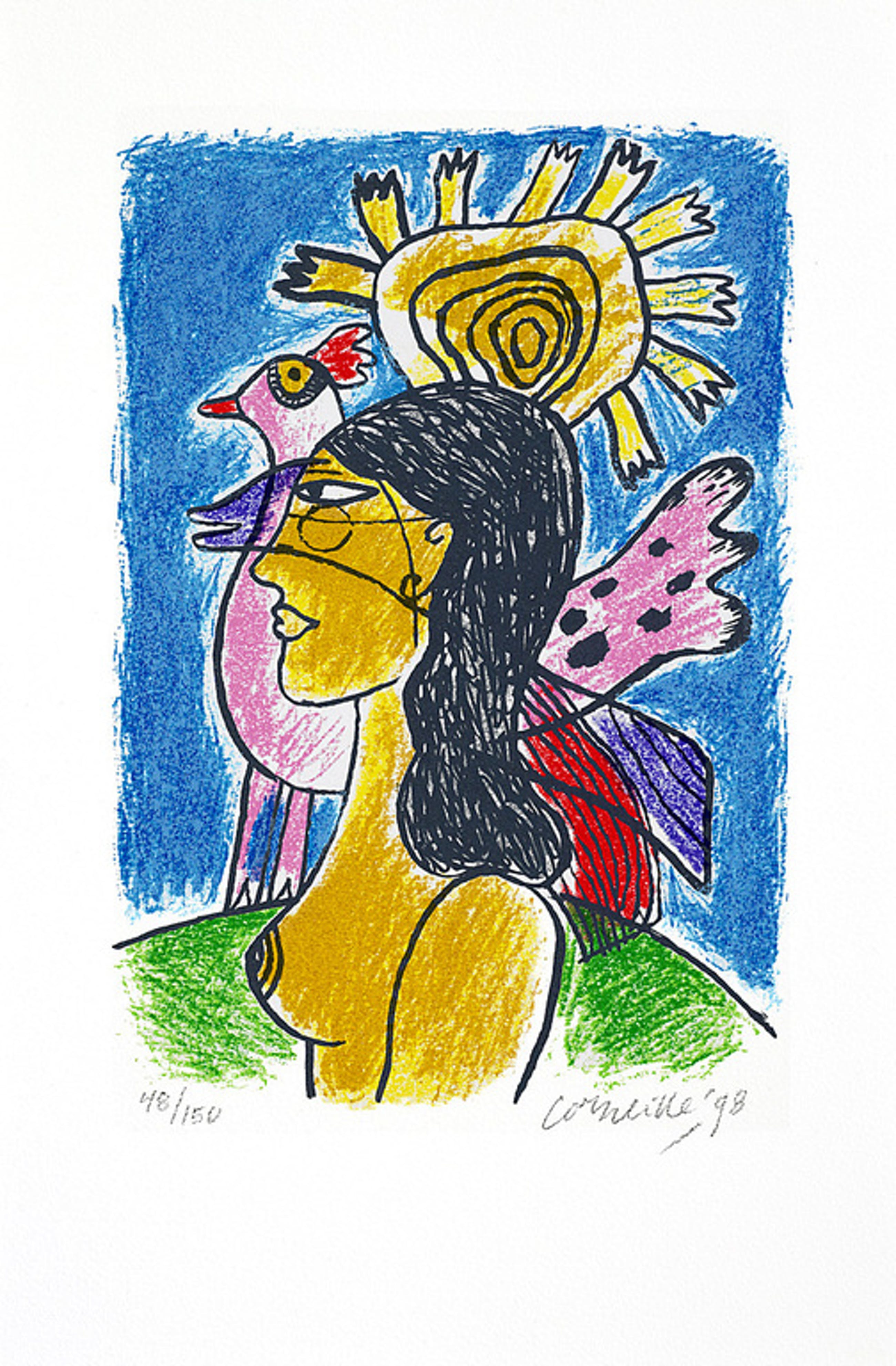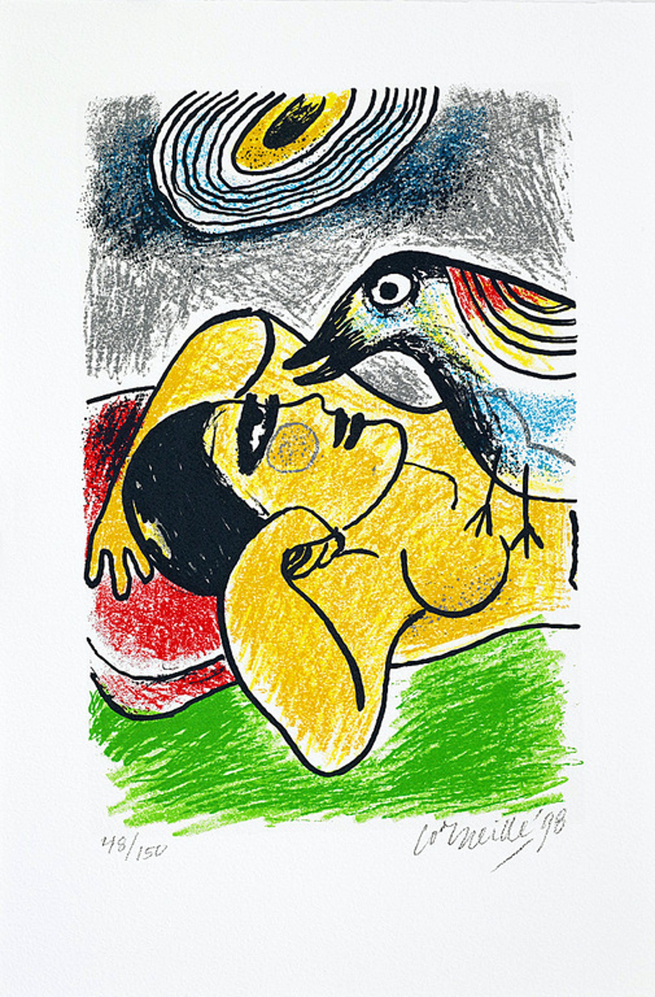 Luxe editie: "Femme et oiseaux II" 3 Zeefdrukken van Corneille uit 1998 + boek in mooi rood portfolio!