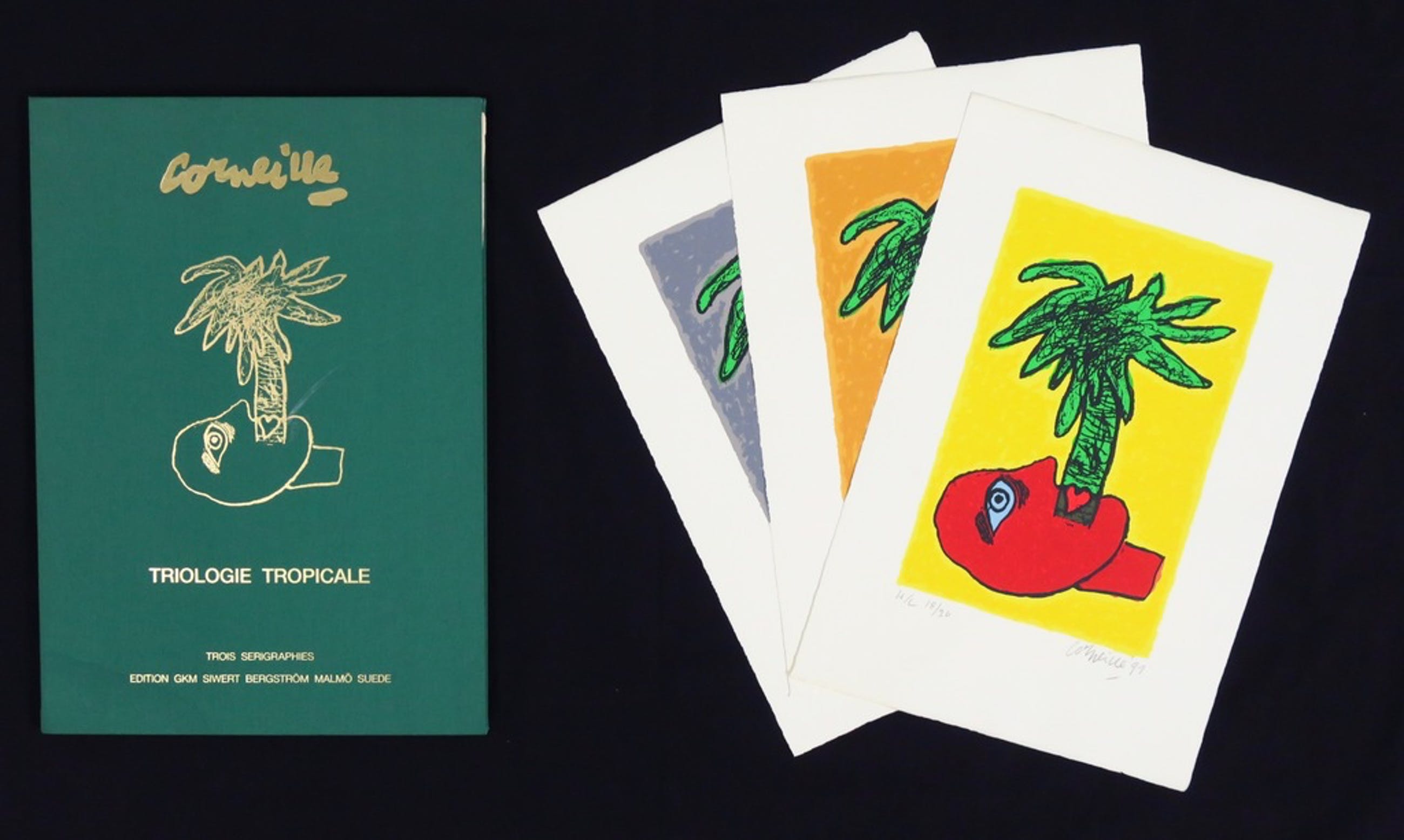 Conditie: Zeefdrukken in zeer goede staat, de binnenflappen van de map hebben wat vouwlijntjes/lichte vergeling en een vlek/veeg op de voorzijde van de map.