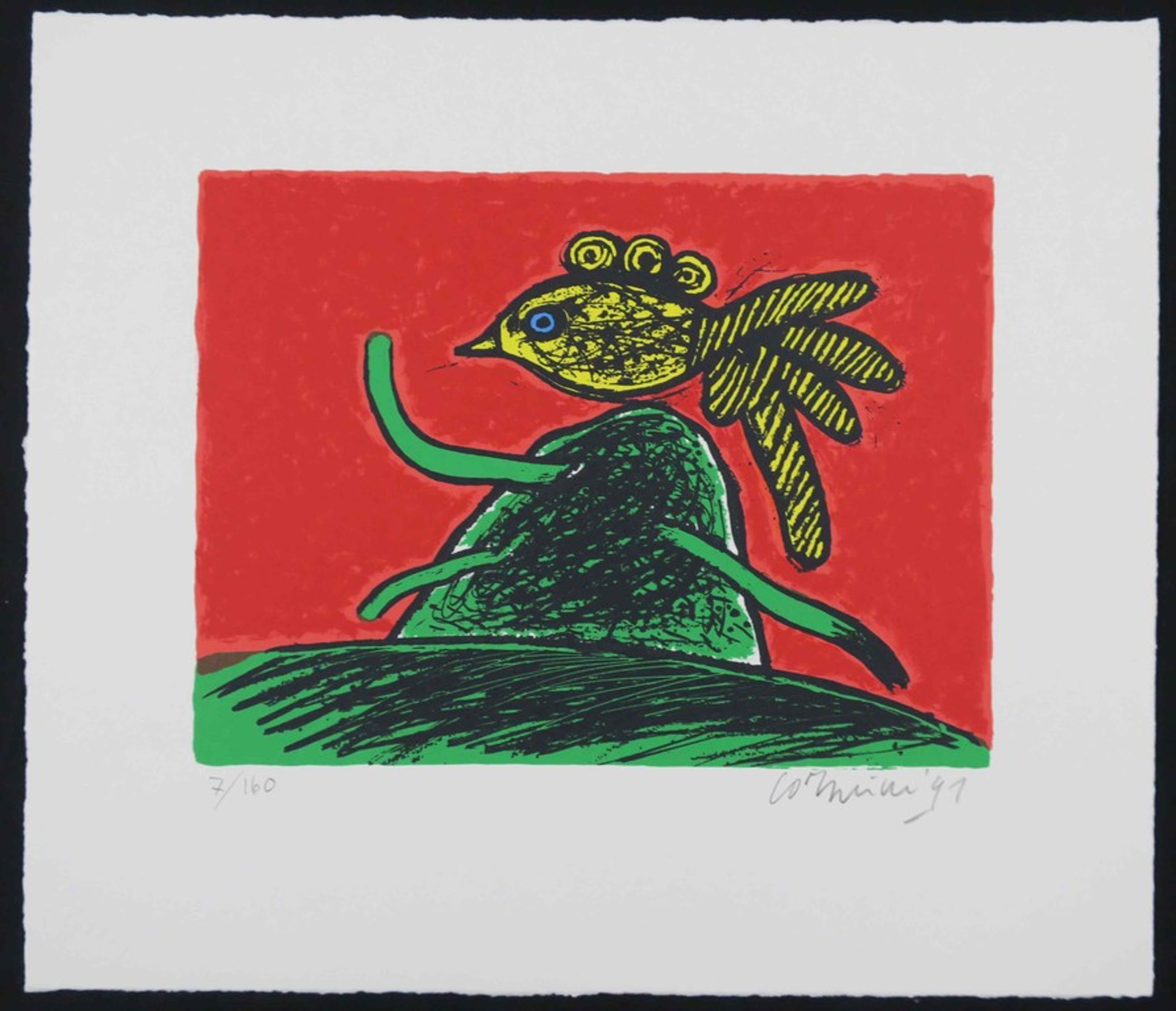 Mooi linnen portfolio met 3 potloodgesigneerde zeefdrukken van Corneille