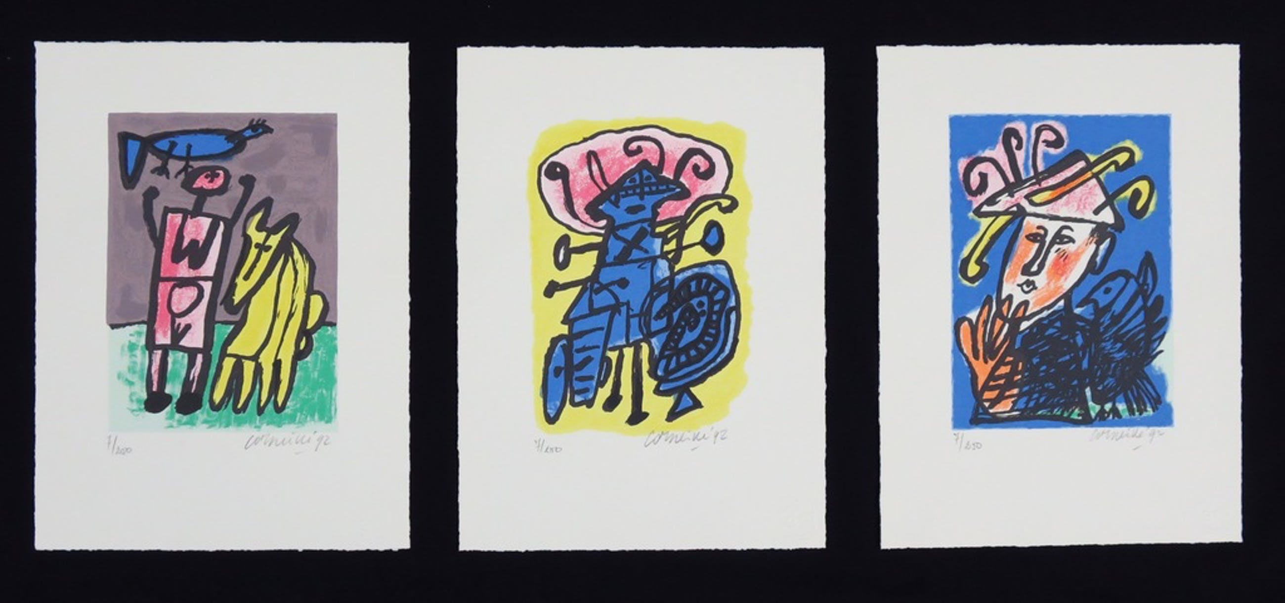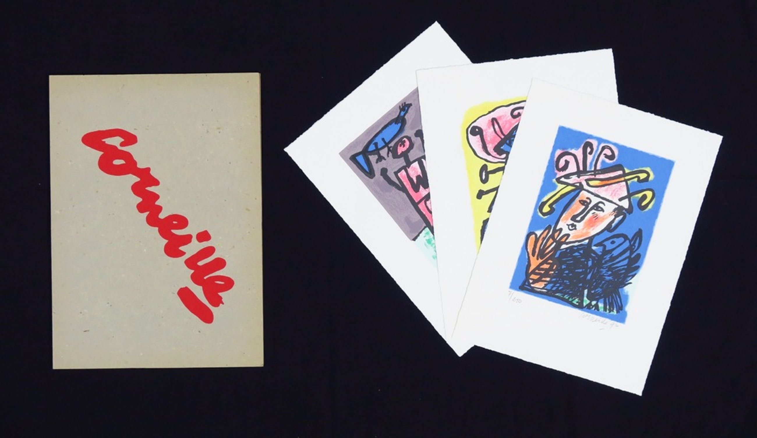 Portfolio Trois images d´un été: drie met potlood gesigneerde zeefdrukken van Corneille uit 1992 in bijbehorende map