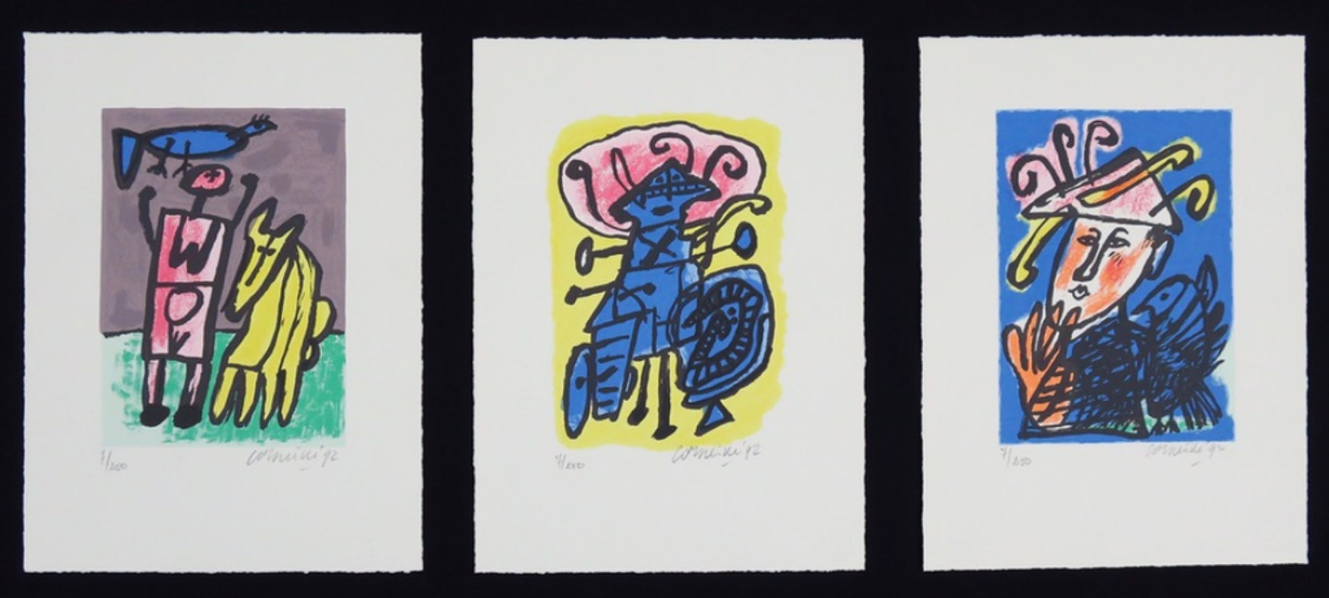 Portfolio Trois images d´un été: drie met potlood gesigneerde zeefdrukken van Corneille uit 1992 in bijbehorende map