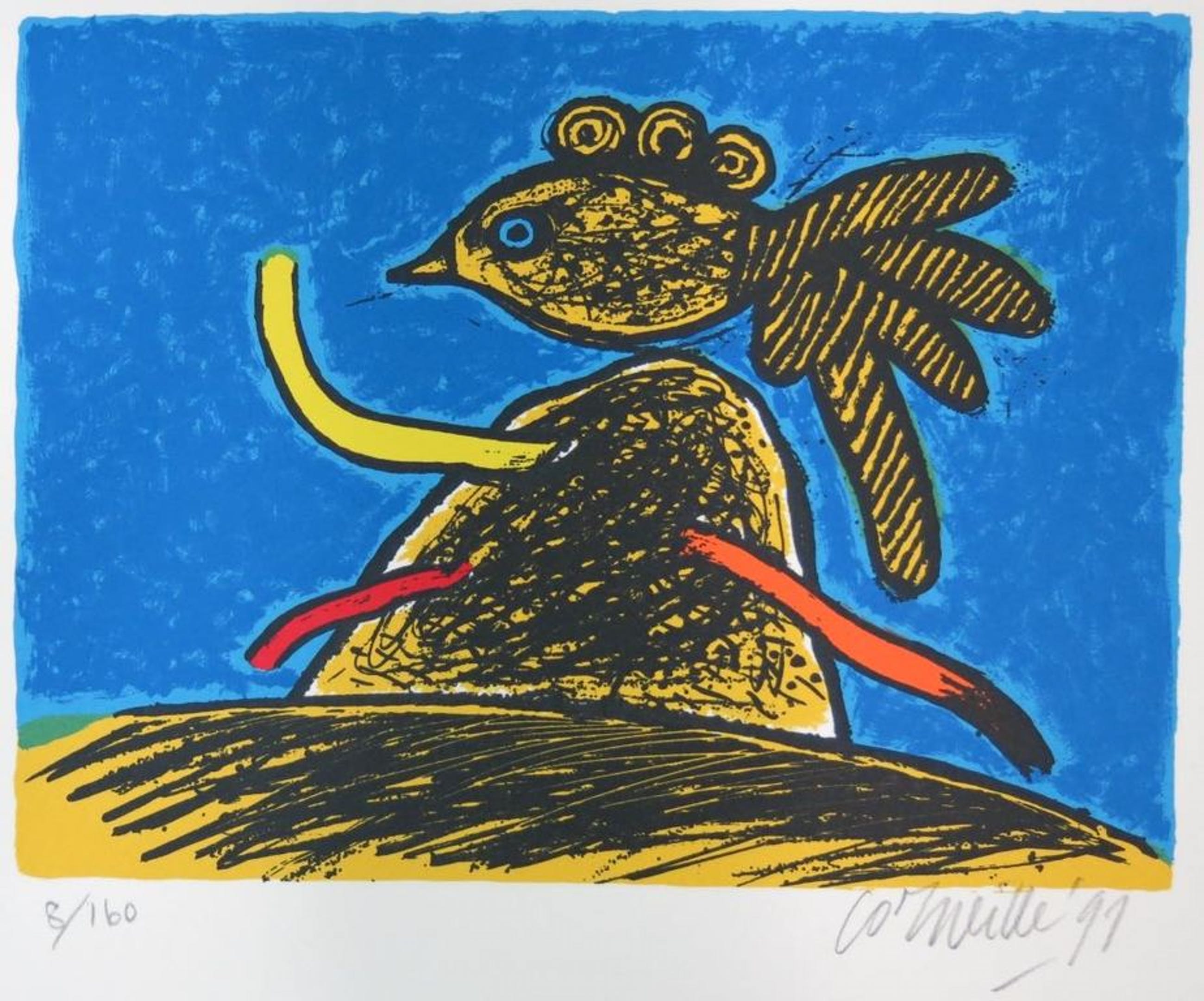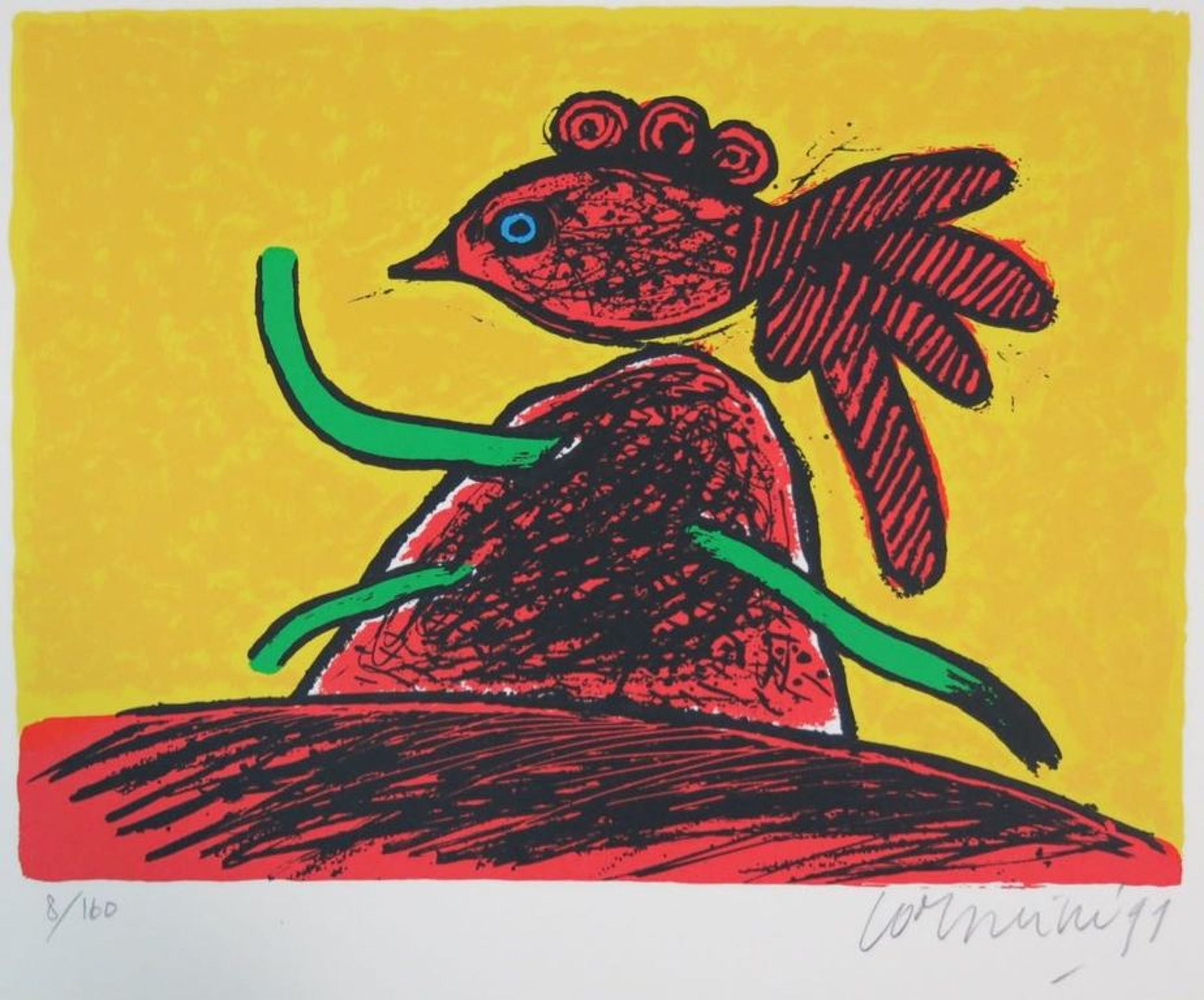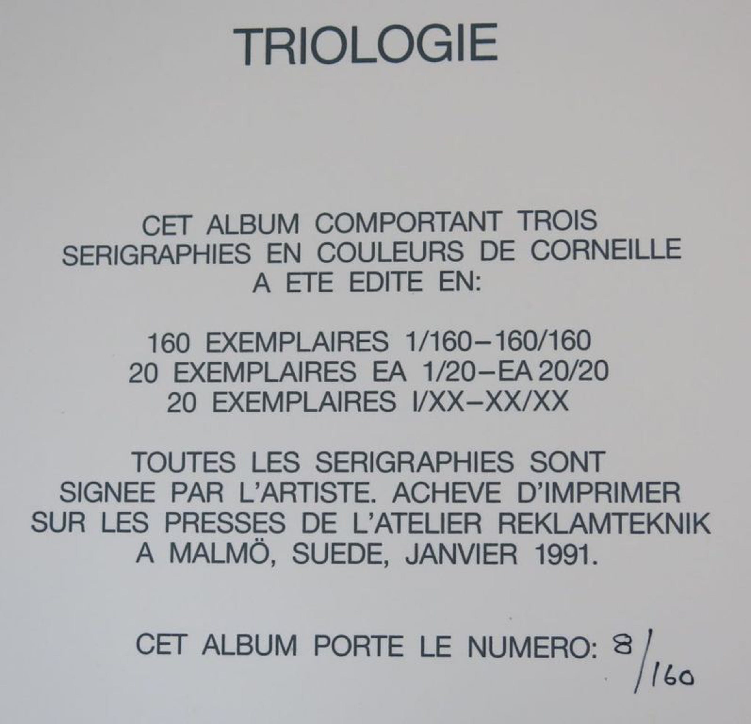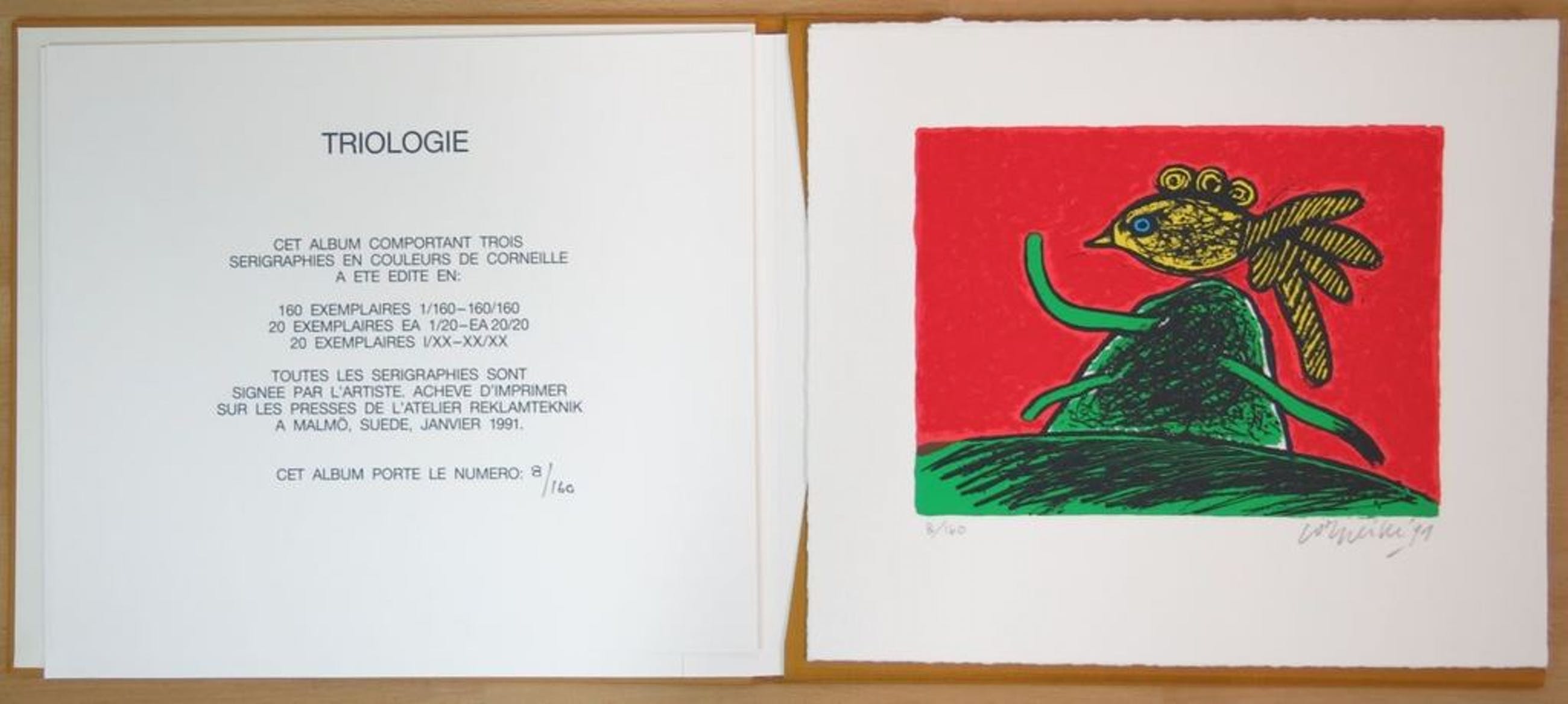 Mooi linnen portfolio met 3 potloodgesigneerde zeefdrukken (seriegraphie) van Corneille, luxe editie.