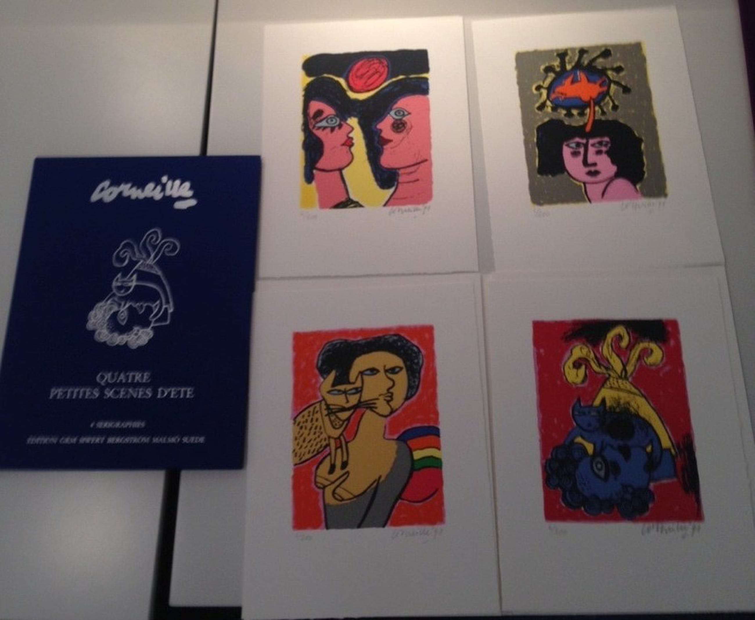 Portfolio “Quatre petites scenes d'ete”: 4 met potlood gesigneerde zeefdrukken van Corneille.