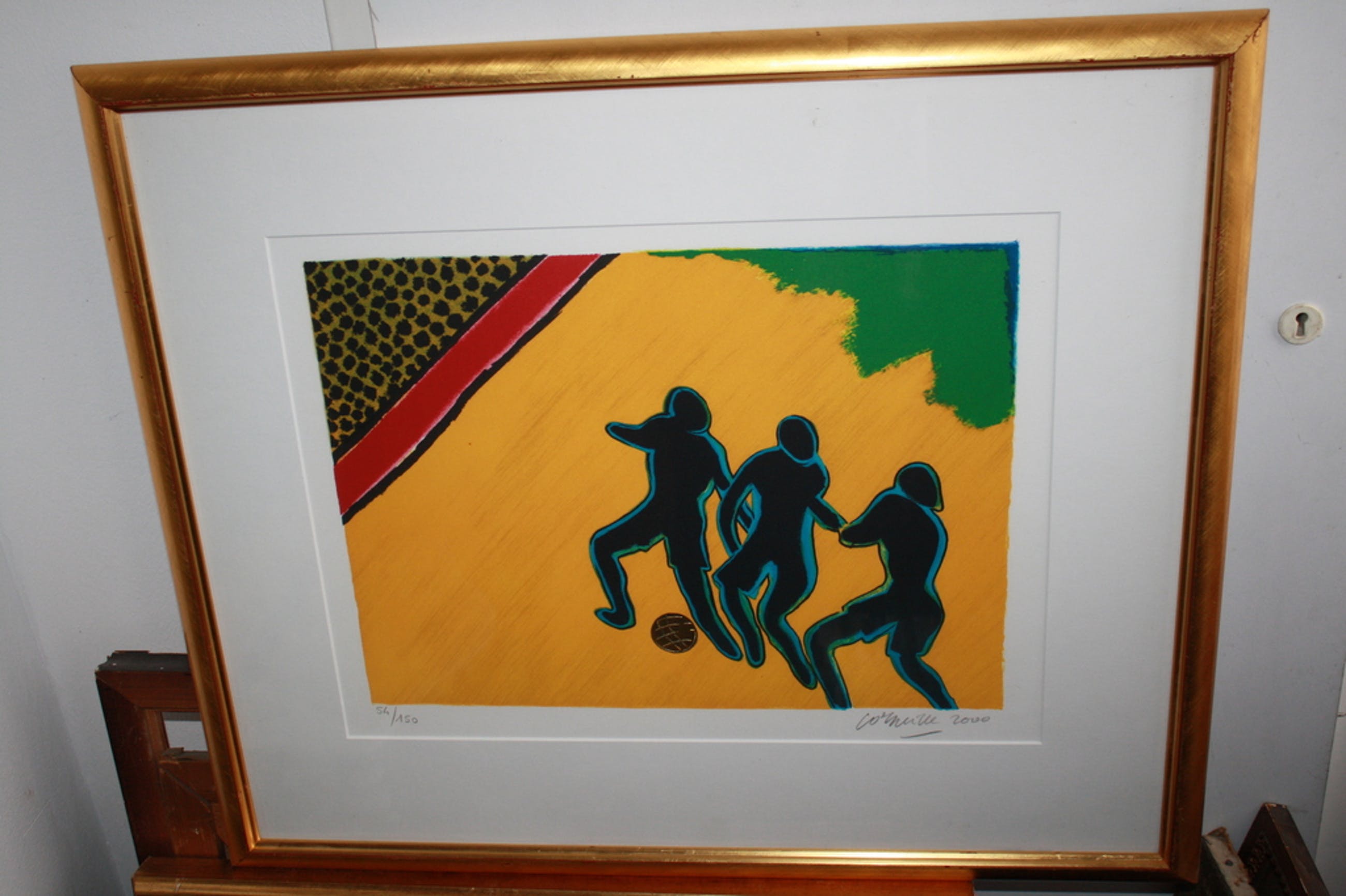 VOETBAL LITHO IN DE MAAT 34 X 44 CM