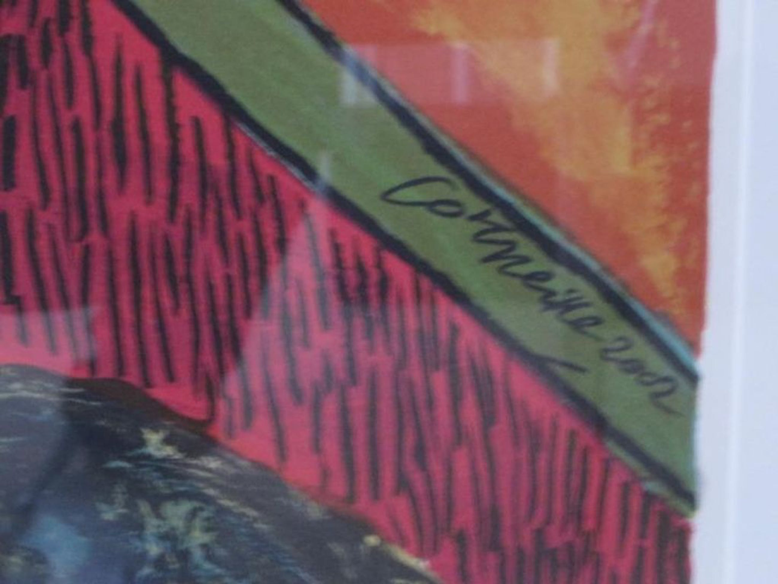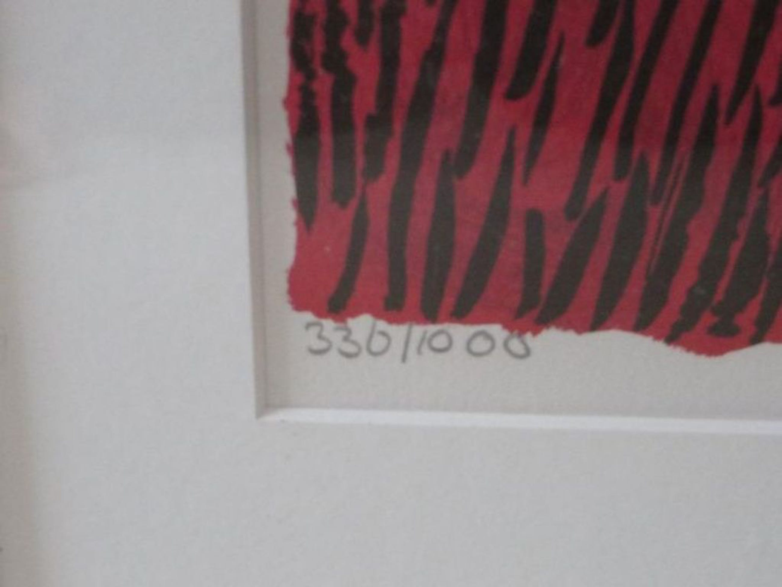Grote zeefdruk/litho uit 2002 in uitstekende staat gevat in een zilverkleurige lijst.