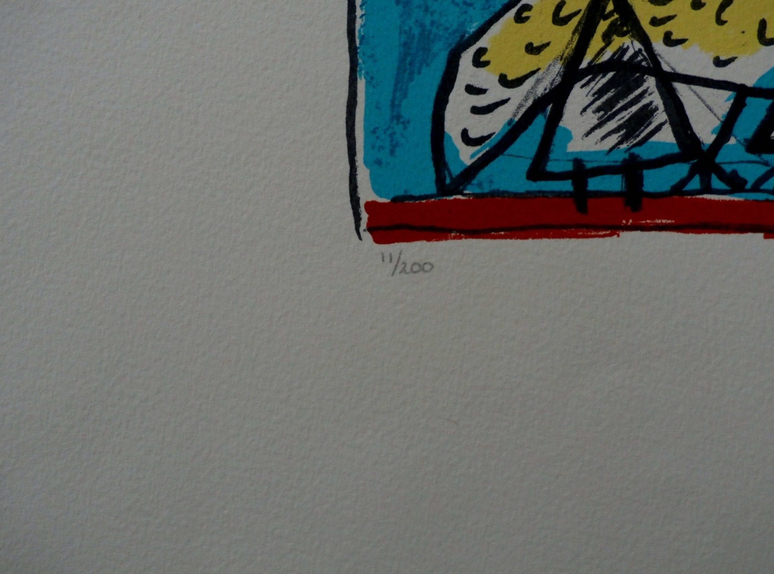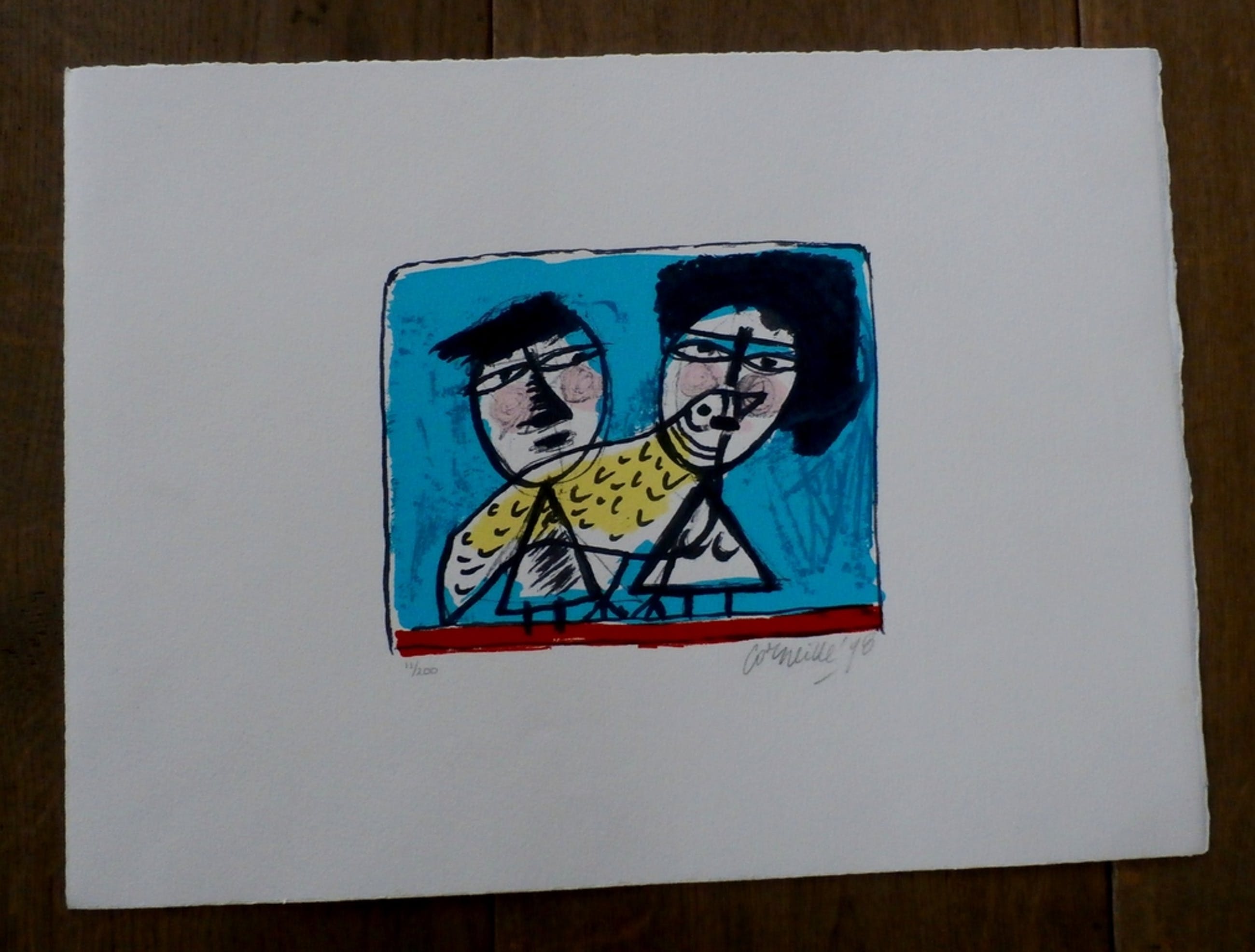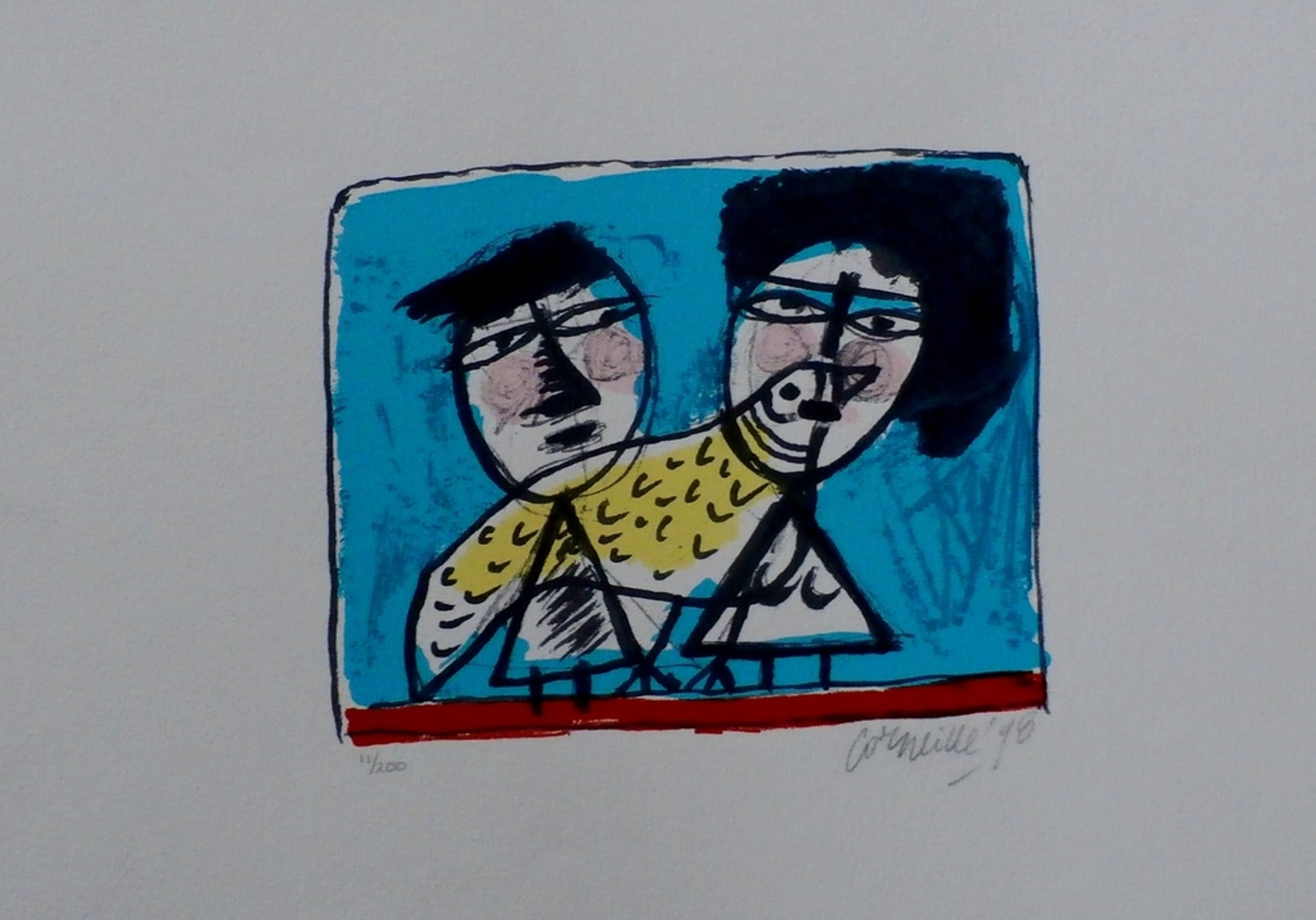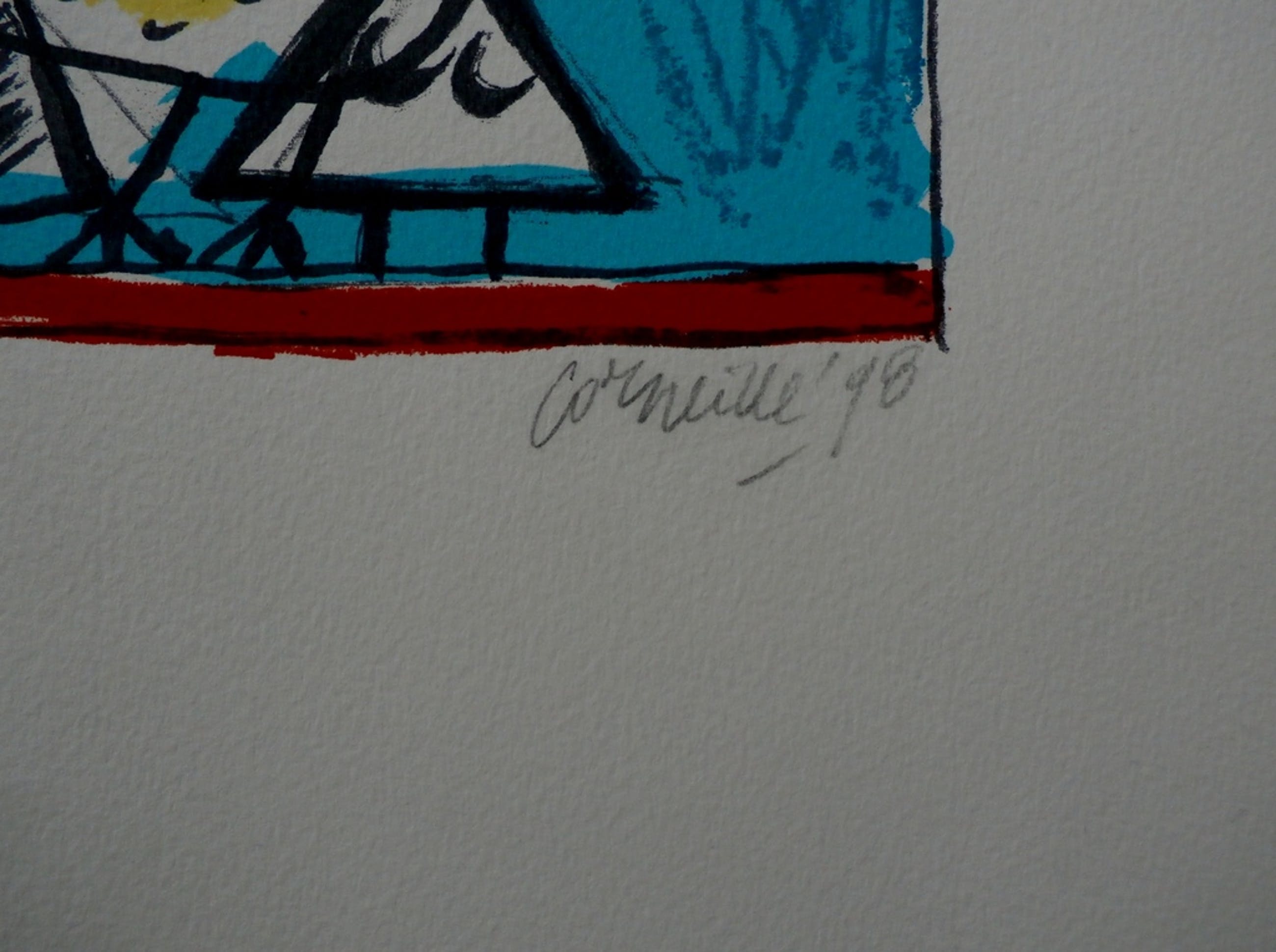 Zeefdruk van Corneille uit 1998. Titel: Onbekend. Afmetingen: h30 x b40 cm. Nummer: 11/200. Rechtsonder, met potlood, gesigneerd door de kunstenaar.